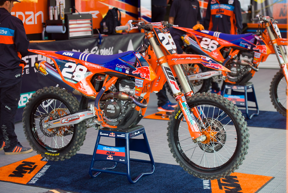 Keefer- I think the TLD KTM’s are the best looking 250F’s in the paddock. My favorite color is orange and it pops well! If only the shroud had a brighter blue to match the seat better, it would be the best looking bike in the pits.
