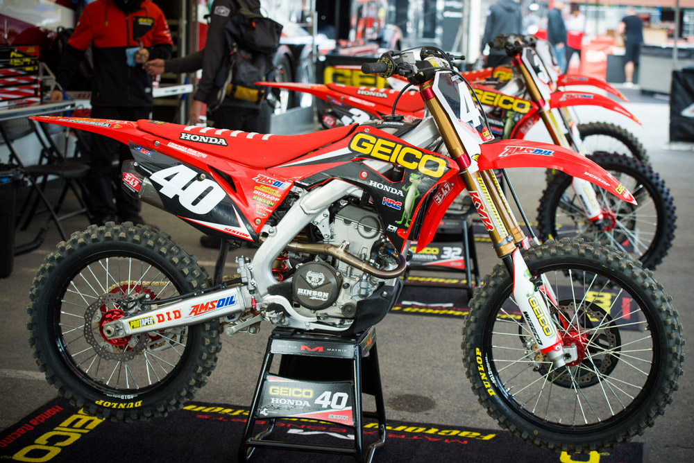 Matthes- GEICO added the red seat last year and yeah, it’s a good look for sure. The new shrouds on the 250 allow for GEICO to look better than in years past and it’s exactly what Honda should’ve done with the stock “CRF” on the production bikes but instead it looks like it was put on by a homeless drunk person.