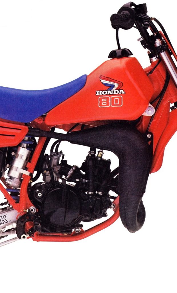 In 1980, Honda dipped their toes into the two-stroke mini market with their first CR80R Elsinore. Fast, but poorly suspended, it was not up to overthrowing Yamaha’s YZ80 as the top mini in the land.