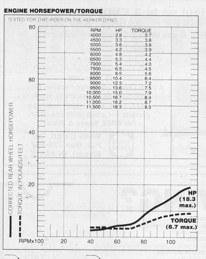 Zero to hero: At 18.3 horsepower, the 1986 CR80R pumped out an eye-popping four more horsepower than the 1985 CR on the same dyno. That equaled a whopping 22% increase year-over-year and pointed to why it was a good thing to be riding red in 1986. Photo Credit: Dirt Rider magazine
