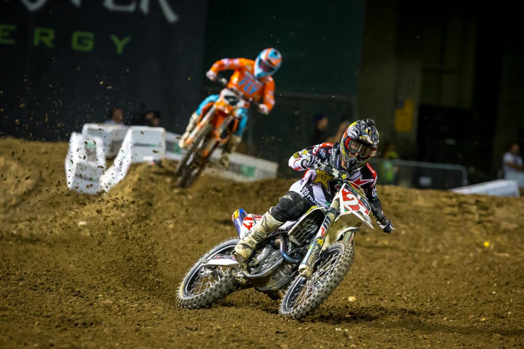 In these conditions, it’s impossible to be super precise all the time or jump straight every lap. You have to be willing to take some chances to go for jumps even if you aren’t 100% perfect on the jump before. Anderson and Plessinger are great at that. Other guys don’t take as many chances and decide to double instead of tripling when they aren’t perfect. That’s costly time wise… Being able to take calculated risks in SX is often the little tipping point that makes the difference between winning and a podium spot or a podium or a top 5…