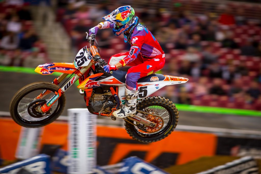 Justin Brayton: JB must of had a whirlwind week at home I would assume. People calling, cameras following him around, family coming to visit for your birthday and just the high he had to be on must of been insane! Just because Brayton won Daytona didn’t mean he was going to coast in St. Louis. No, the dude gets second in qualifying, wins his heat race and gets fourth in the Main! If he would of got a better start in the Main he would of been on pace with Musquin. Not to mention JB10 hooks his bot under his footpeg just like Eli does when he hits a sharp jump. I have been mentioning this on the Pulp Show for a while and Brayton tagged me in one of his pictures on Instagram, proving to me he does this as well. Doing this keeps the rider locked in and close to the machine when the jumps are sharp. At 34 years old Justin is evolving his riding style and I love it! This proves you’re never too old to learn something new to better yourself and your technique on the bike. Don’t be surprised if Brayton wins another one this year. He has the confidence and the guy is a technical master when the track is jumpy.