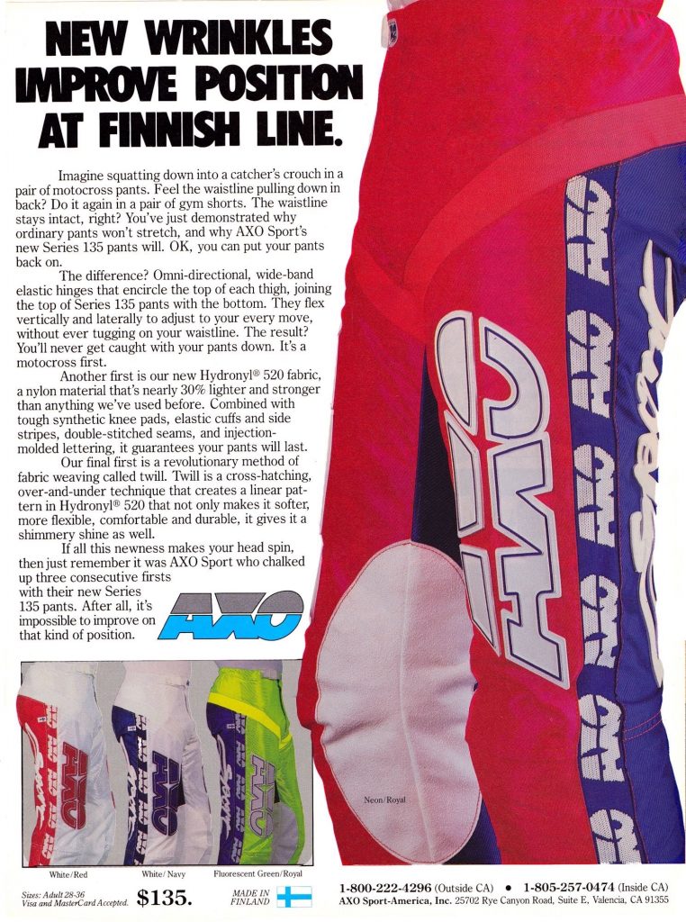 MOTO GEAR HISTORY PART VII: AXO SPORT THE EIGHTIES