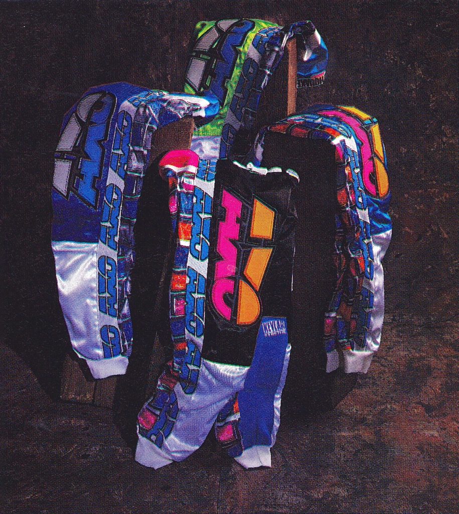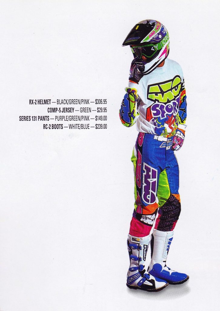 Blaze: A new Comp 5 jersey for 1993 offered more cartoony graphics and the same all-cotton construction. Those Purple/Green/Pink Series 131 pants were a great look if you had a Kawasaki.