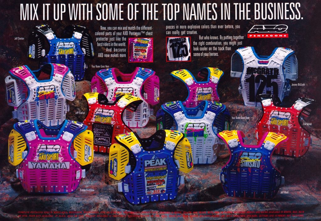 For this installment of our Moto Gear History series, Matthes and I are going to look back at AXO Sport in the decade of the nineties. If you missed part VII, where we chronicled AXO Sport in the 1980s, you can read it HERE. If you like this sort of thing and want to read more, make sure you check out Moto Gear History parts I-VI, where we examined the origins of JT, Fox and Answer Racing.