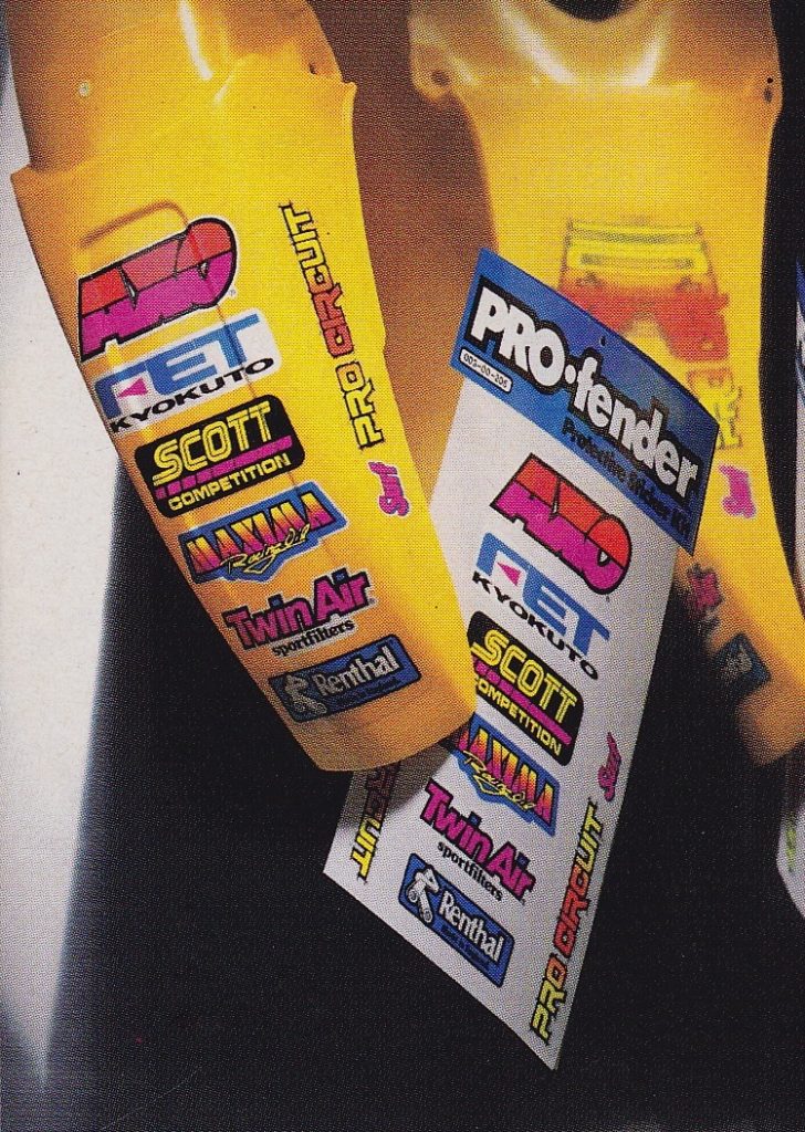 Matthes: My brother was always an artsy-type of guy, so over in the Matthes household we were covering our rear fenders with clear mac-tac for a long time to keep our sponsors looking good, so this was not needed. I always thought it was super weird to buy a rear fender sticker that didn’t have all the sponsors that you used. Like, why would anyone do that? However around this time I had a small MX shop and sold the shit out of these so…who knew?
