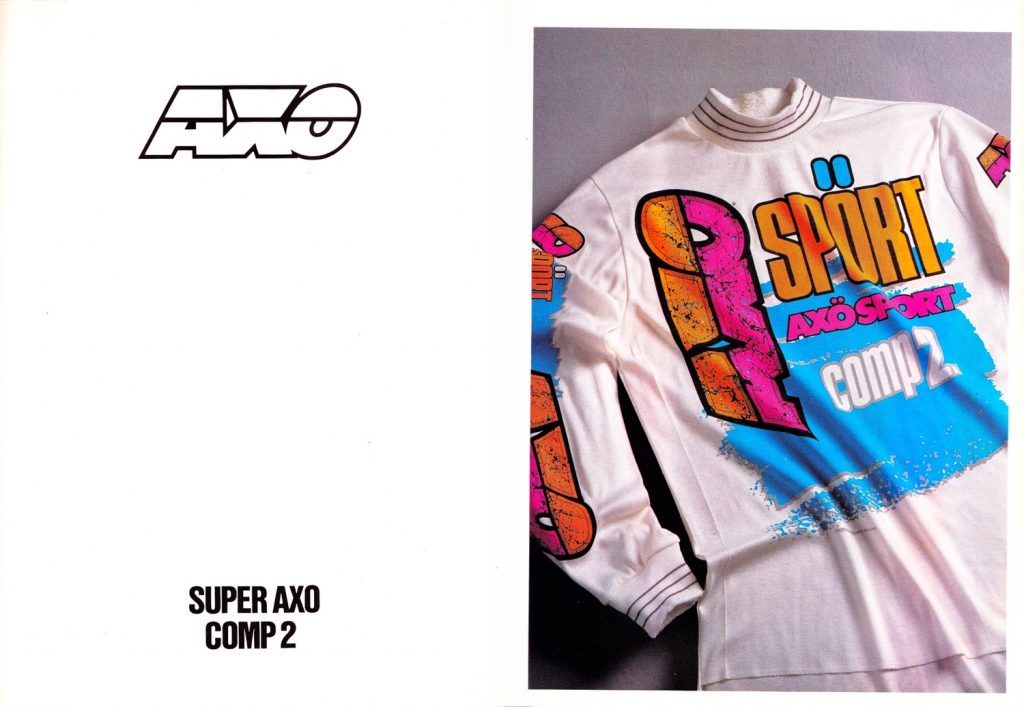 One question I do have, though: What the heck is with the use of the umlaut on the logos? Since when was AXO Sport spelled with that wacky little double-dotted O German thing? I’m sure someone thought it made it look exotic, but AXO is an Italian company, not German. Oh well, it must have dawned on someone, because after ’90 they never used it again.