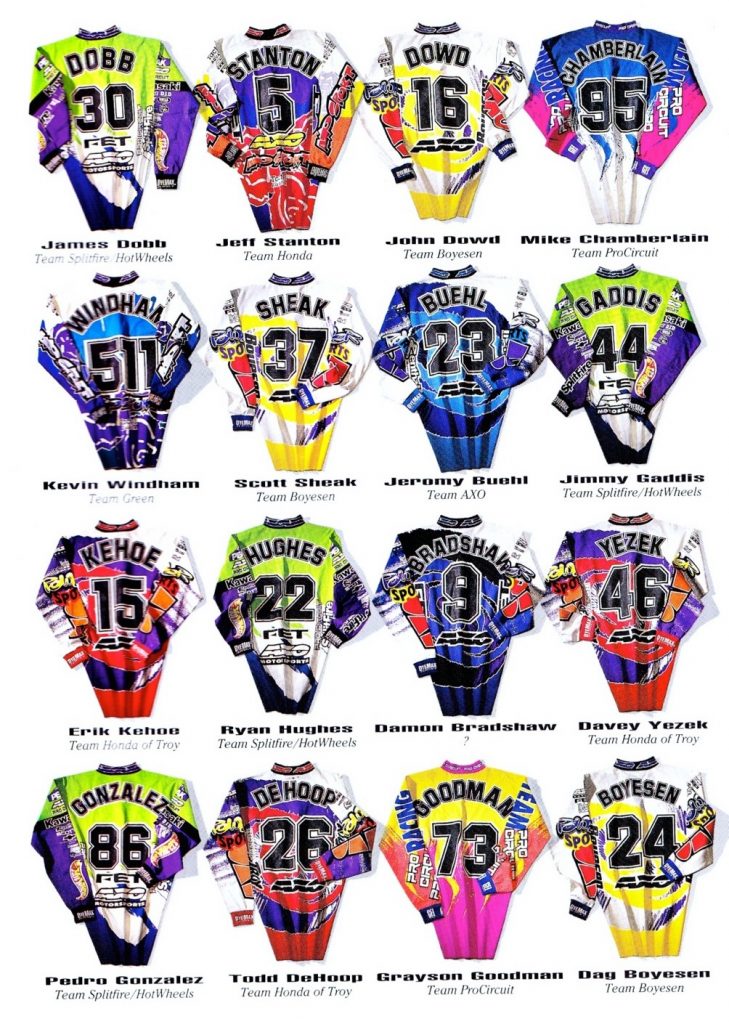 Blaze: Both the Pro Circuit and Honda of Troy team sported the Team Issue AXO gear in 1995. Both the Red/Blue and Green/Black combos were some great looking kits.