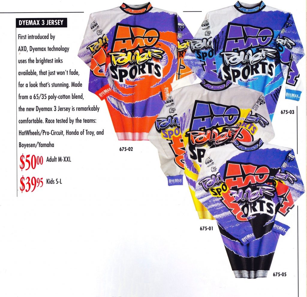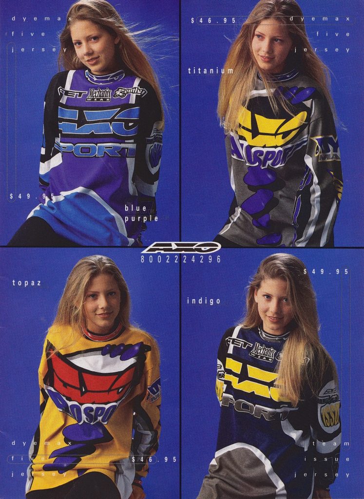 Blaze: The new Team Issue jerseys were much cleaner and by far my favorite of AXO’s offerings for ‘95. The new Dyemax 5 was available in some great colors as well, but that crazy new logo was a bit much for my taste.