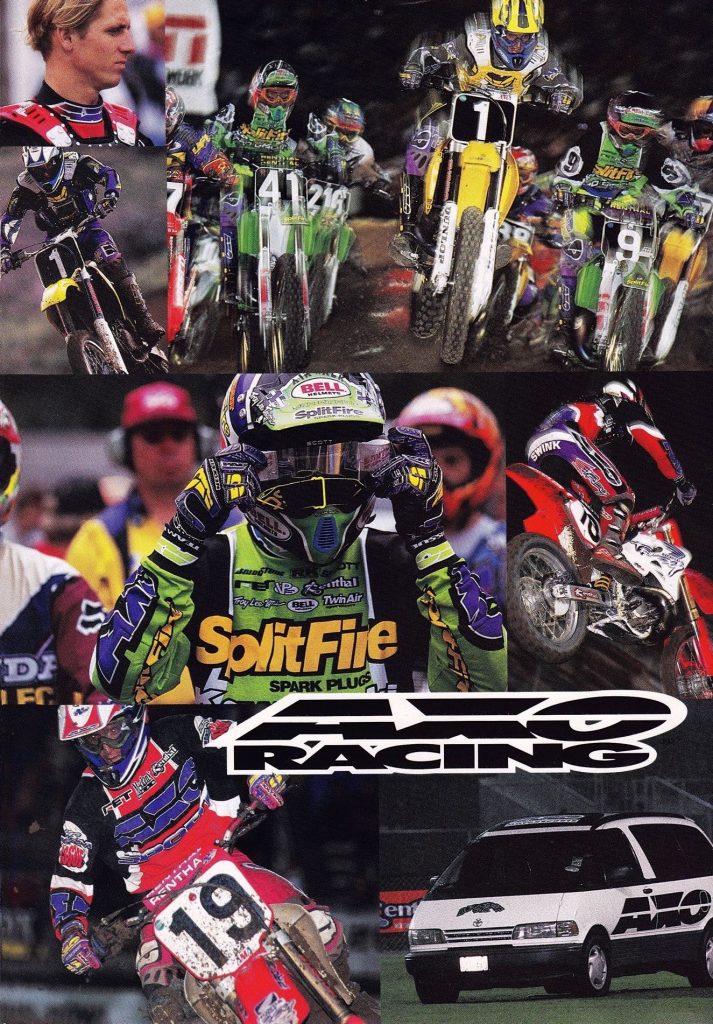 Blaze: The 1994 season was set to be a great one for Jim Hale’s company, with a number of big-name riders and teams under the AXO umbrella. This ad is cool both for the great assortment of colors and styles available, and also for the presence of one Damon Bradshaw. Set to be national number 9 in ‘94, Bradshaw’s status was still very much up in the air when this ad went to print in the winter of 1993. Few people outside of his inner circle thought Damon would actually walk away from a multi-million dollar contract at the ripe old age of 21. While he did come back two years later, the Beast would never again be the threat he was before his early retirement.