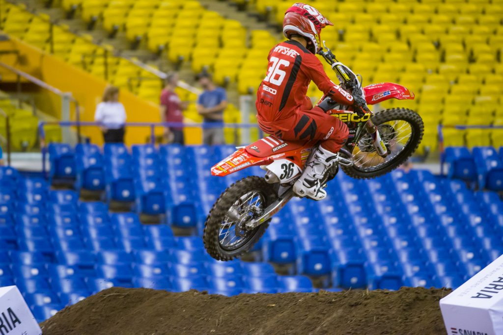 Colt Nichols looked great out there with the second best time of the day. Filthy Phil debuted his new Rockstar OTSFF Yamaha ride and was still setting his bike up the way he wanted to during practice. New FXR gear for Phil as well that I should probably get a % of.KTM Canada’s Kaven Benoit isn’t an indoor specialist but in front of his home fans, he’ll be the popular favorite.Why not run another one of Phil?JGR Suzuki’s Alex Martin was third fastest in the 450 class in the second practice on his 250. #TrollTrainCanada’s MX2 MX champ Jess Pettis topped the 250 times todayMookie Stewart was the fastest rider in every one of his practices today and is the favorite for the overall win.RJ Hampshire had an issue with his bike that caused a crash in practice one but they got it sorted out for the other two practices.Canada’s MX1 champ Colton Facciotti working on his indoor skillsMike Brown is here everyone.Nichols looks to battle with the #27 for wins.Hanny is here and seems to be enjoying himselfHey, look who’s back! Mike Alessi is hereMore PhilCedric Soubeyaras will be a sneaky good choice for a podium tonightMatt Goerke was fastest in one of his practicesFrench SX vet Thomas Ramette is here also