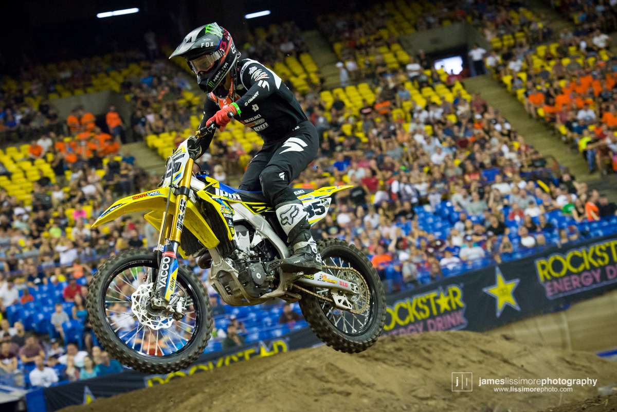 Olympic Stadium in Montreal was the site of the race and although it looks pretty cool, it’s best by date has come and gone for sure.Lissimore actually makes the inside of the stadium seem cool here.Eric Peronnard was the man who got all the American riders there and made sure everything ent smooth behind the scenes.GDR Honda team owner Diggs puts on some grip tape on Facciotti’s bike and he also wrenched for Dylan Wright. Then he bought pizza for the everyone after the main. Yay DiggsLots of controversy about Alex Martin racing his 250 in both classes. The team had white on black #26’s for Martin but then he was booted to 450 class and needed numbers. So GDR Honda had some backgrounds on the truck from when Jake Nichols raced for the team. Bingo, bango- Martin became #145Hot Dog Vendor laughs and laughs about trying to replace Pettis in 2019.Speaking of Pettis, he easily won the MX2 main event. What a year for for Jess.Canada MX has stepped up this year with the addition of the stand behind the starting lineHanny was there on his new Honda marketing ride. But his MX suspensionheld him back out there.Goerke led most of the second main event until Mookie caught him from a ways back. For about a lap it was a great race between them.Peronnard brought in a couple of French SX vets in Cedric Soubeyras and Thomas Ramette. And they were on Suzuki’s at that. Combined with Martin, they tripled the amount of Suzuki’s that raced in all of Canadian moto this year.Alex “Nichols” Martin was pretty good on the smaller bike out there. He’s very stoked on his 2019 machine although he rode the 2018 in Montreal.Facciotti didn’t have the night he wanted to under the lights and lost a few points to Thompson in the 100K Rockstar Triple Crown chase.Ramette, the true Rammer out there.Filthy Phil debuted his Rockstar OTSFF Yamaha ride and new FXR gear. He crashed in the final main event and then got run over by Hampshire.T-Dags got a great start in the final main event and led a lap and everything.RJ Hampshire was there, had some bike issues, ate poop because of them and then got put down by Hanny in main number 1. Rough night for the #36.Colt Nichols was very good all day long, just a tick off Mookie.These two had some great races in almost every main event with Goerke getting the edge for third.Mike Brown was there! And although he’s 43 years old and wasn’t that comfortable on the full-on SX track he did ok.Mookie was the man in Montreal going 1-1-1.This man wanted to light me on fire just a few years ago. We’re good now though!