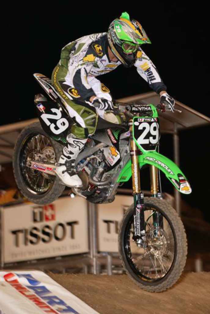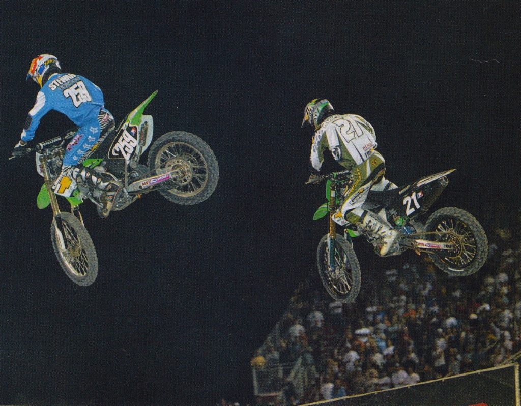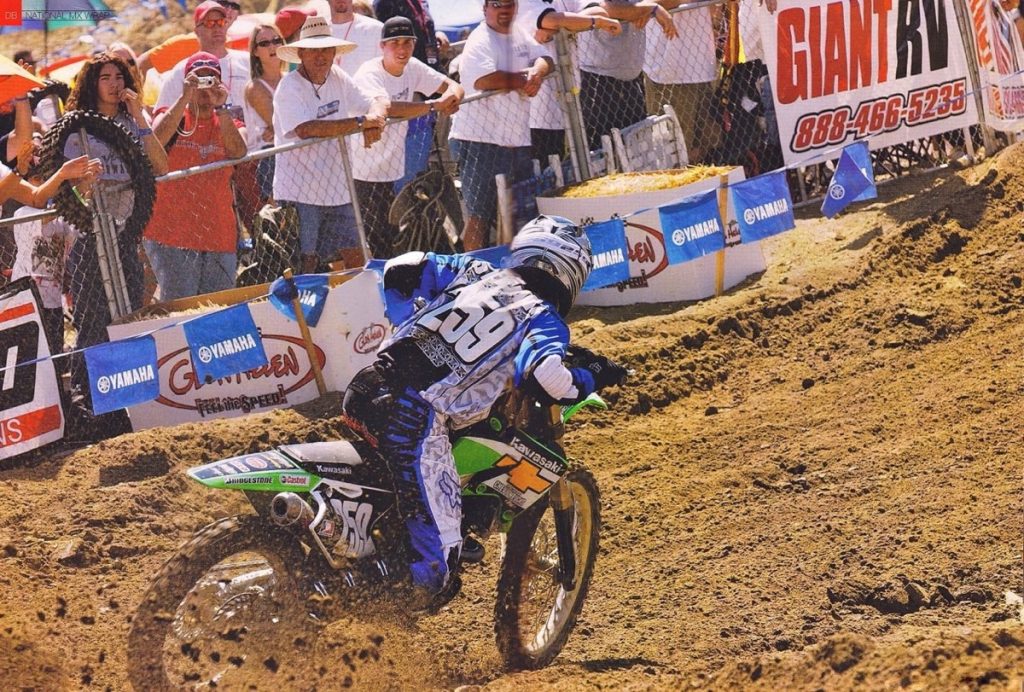 At the final round of the 2004 125 Motocross series, James Stewart finally parked his trusty KX125 in favor of the new KX250F. After finishing out the season with another dominating 1-1 finish, he commented on the new bike on the podium by stating “If I was riding this thing all year I’d be fat and out of shape!” Photo Credit: Dirt Bike