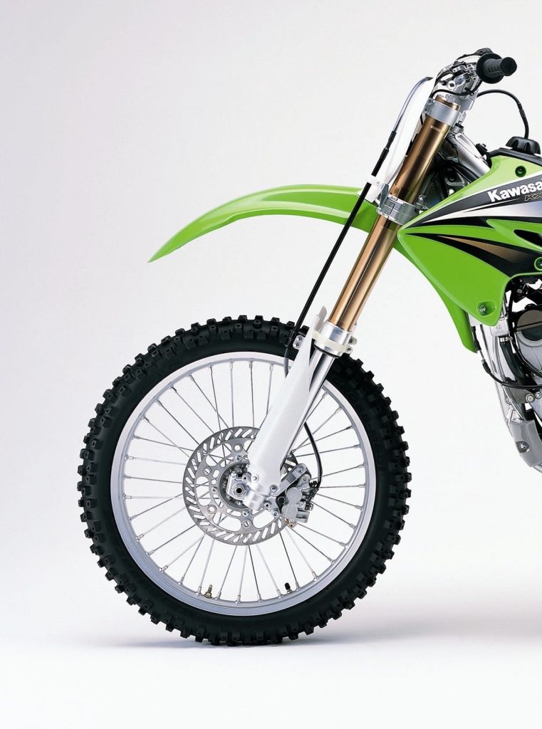 The 48mm Kayaba forks found on the KXF/RM-Z were softly sprung, and at times, harsh in action. Most novice riders could live with their performance, but anyone above the intermediate class was likely to want stiffer springs and a revalve. Photo Credit: Kawasaki