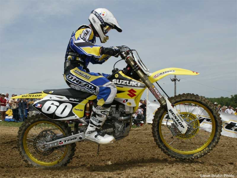 PulpMX’s own Kris Keefer putting the all-new Suzuki RM-Z250 through its paces in 2004. Photo Credit: Dirt Rider