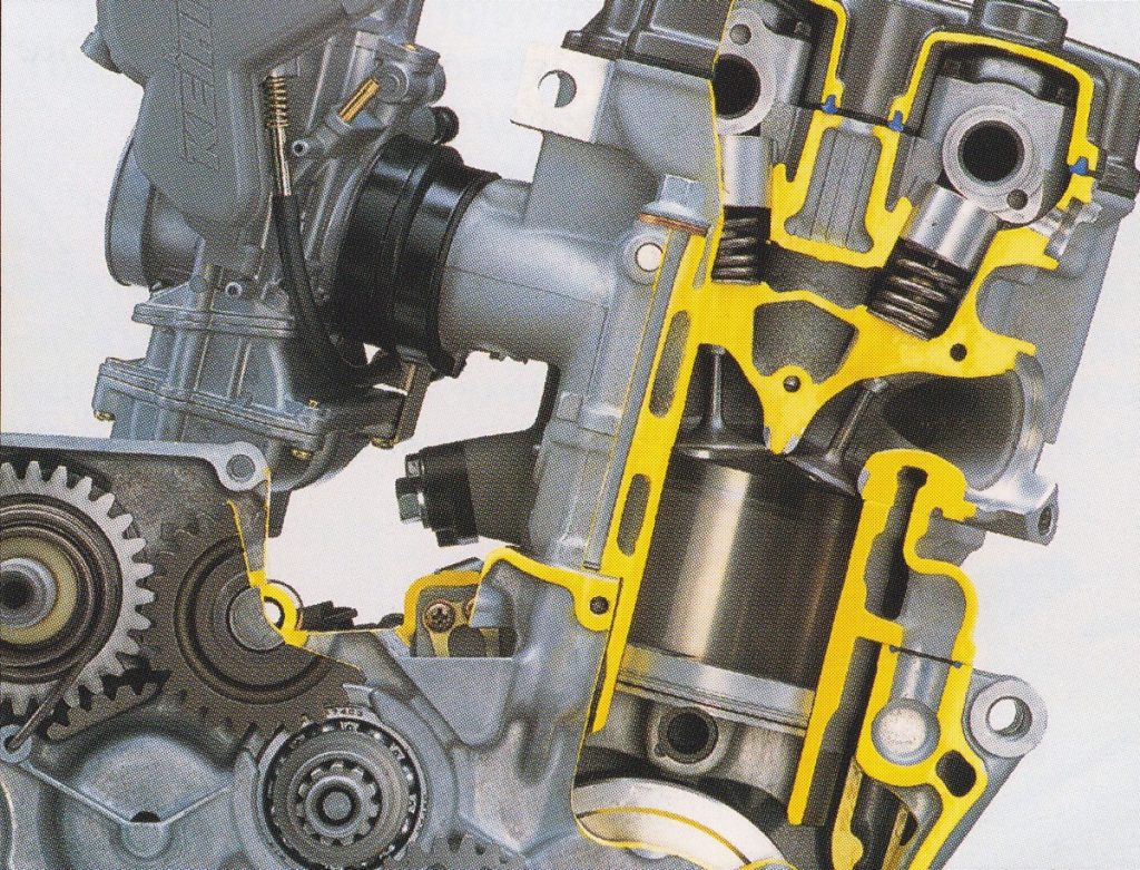 While the new motor was competitive on the track, its significant mechanical maladies left many buyers longing for the near indestructability of Yamaha’s impressive four-strokes. There were issues with the valves, buckets, valve springs, transmission and clutch…as well as a chronic over-heating problem and a propensity to eat oil at an accelerated rate. When it ran, it was fun, but keeping it that way took mega dollars and constant vigilance. Photo Credit: Kawasaki