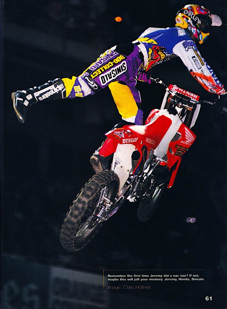 This isn’t the first Nac-Nac MC ever did but it is from that year, but I didn’t get the first ever Nac-Nac. This was a little later in the season after all the hoopla about the Nac-Nac. I think – I’m not positive – the first time I saw a photo of a Nac-Nac, Davey Coombs shot it. It was a really cool shot. It was a black and white photo and it had a supercross crowd in the background. I was totally jealous that I didn’t get the photo. But this isn’t the first Nac-Nac photo. This is my first Nac-Nac photo, but it wasn’t the first one published.