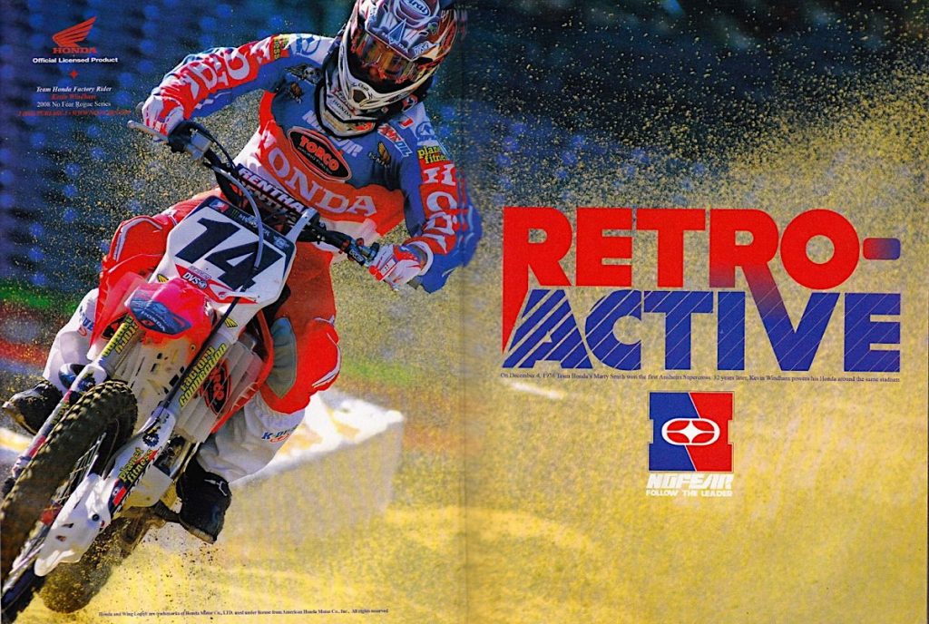 Actually this was the first photo in an ad that I ever had. I didn’t send it to them. The advertising guys at High Torque would sometimes go through my stuff without me knowing it and send photos off to advertisers. I know this photo ran in the magazine, ran in MXA, so I don’t know if Pete (Fox) called one of the ad guys and asked them to use it, which may have been the case, but when I opened up the magazine and saw it I was totally blown away. I was totally struck because I really love that photo. It’s kind of representative of my style back then, just slow shutter stuff, the motion blur, playing with the light in the stadium and everything. I think I did that pretty much more than anybody else did.