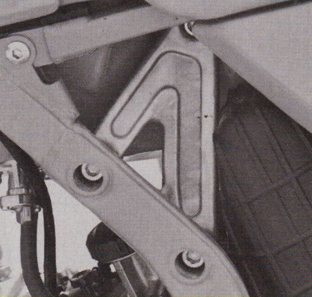 This unique bolt-on top shock mount made servicing easier, but proved prone to cracking under hard use. Photo Credit: Dirt Bike