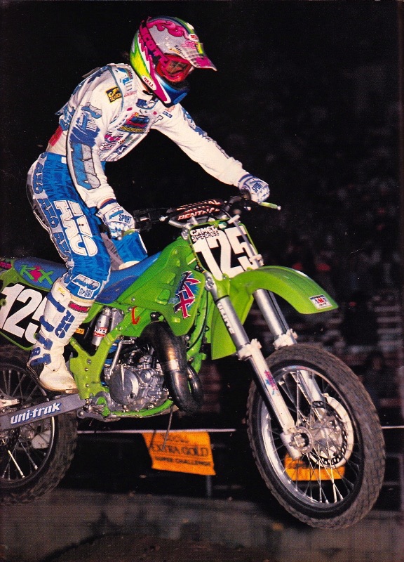 In 1990, a little-known Team Green kid by the name of Jeremy McGrath took the new KX125 to his first Supercross win at Las Vegas. Photo Credit: MXA