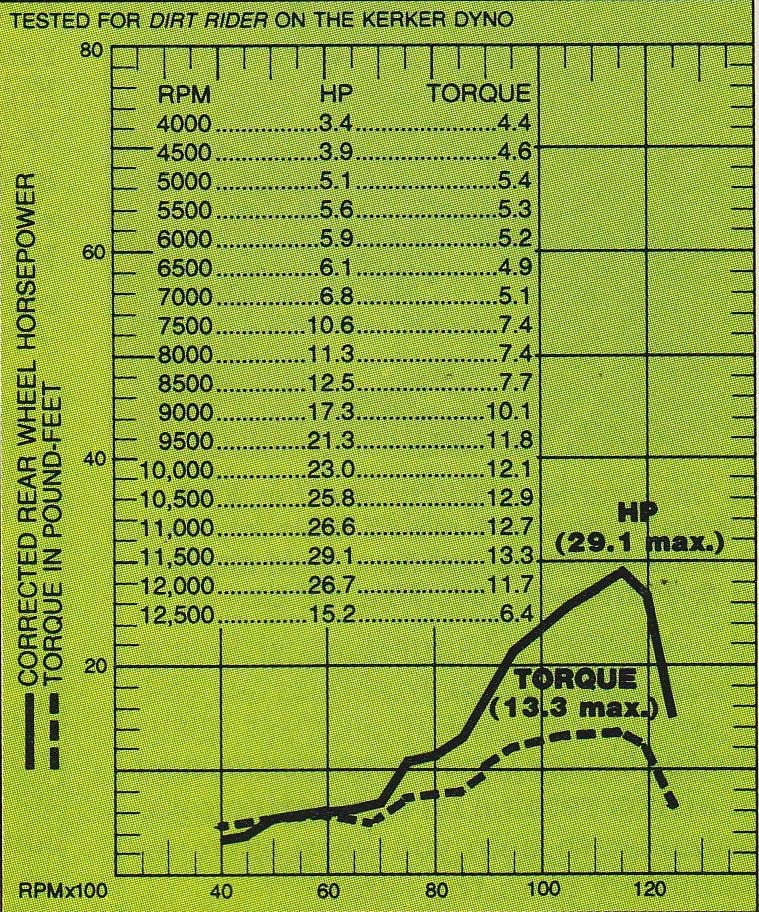 Out back, the Kayaba shock and revised Uni-Trak offered similarly excellent performance. Like the forks, there were adjustments for compression and rebound, with a whopping 13 inches (most in the class) of plush travel. Both the spring rates and valving were well-sorted and certainly within the range of the bike’s target audience. Really fast guys may have wanted a re-valve and spring swap at both ends, but for most mortals, the stock settings were excellent.
