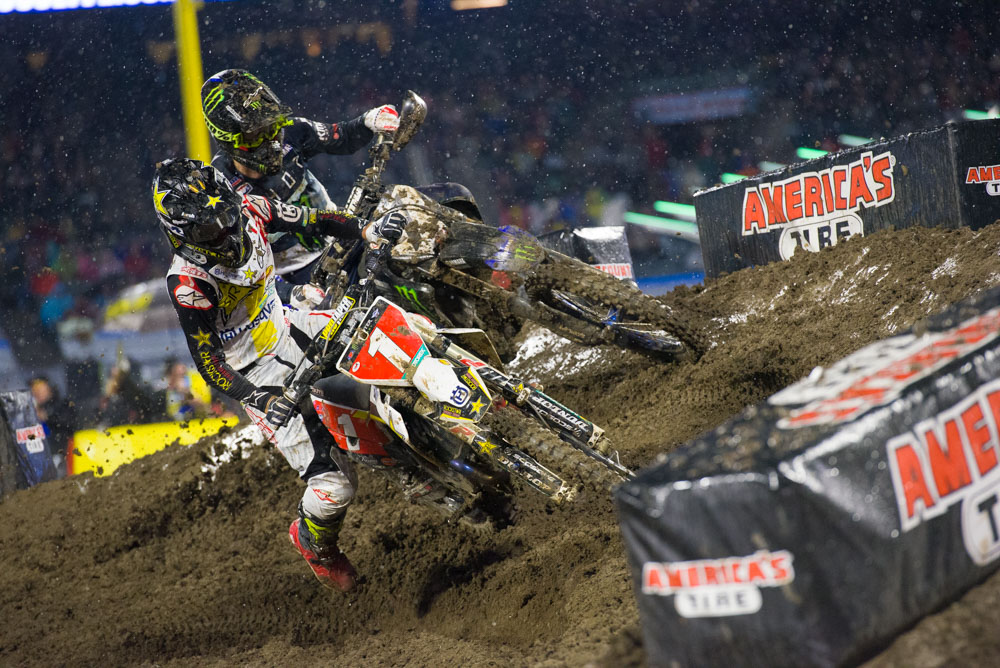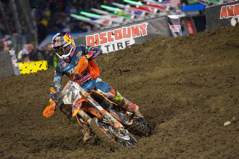 Cooper Webb: Webb didn’t start out the day that great in free practice and eased his way into the first round. A first turn crash hurt his chances at a podium, but coming from 20th to 5th shows us that he is capable of getting through a lot of quality riders in a hurry. Also, if you look at Webb’s KTM 450 SX-F on the track, it looks like it sits or rides lower to the ground compared to Musquin’s bike. Maybe the team lowered the bike to accommodate his short stature? I am going to get to the bottom of this.