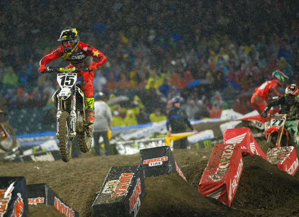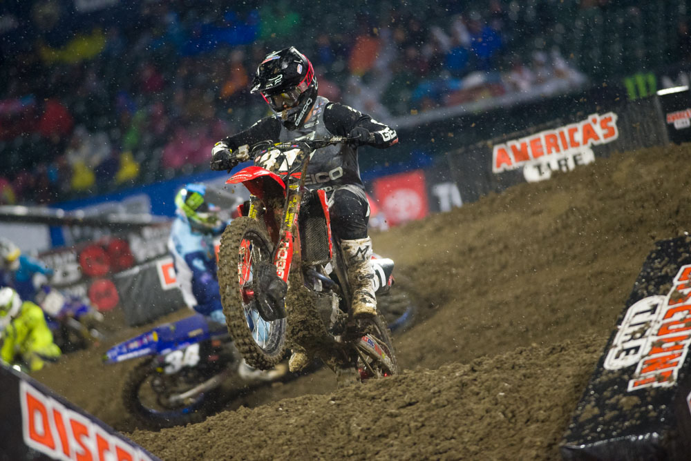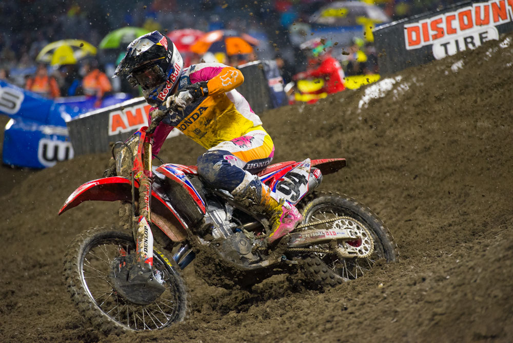 Ken Roczen: I can’t tell when Ken is riding hard or even trying because he is just so damn smooth. I noticed that Ken was one of only about three guys that would stand up around the whole under over bridge corner, which allowed him to not have to brake as much through that slippery crap of a corner. His technique is so advanced, yet not too “Americanized”, that you can’t tell he comes from a GP background. Ken also was consistently jumping the big double double in the main event that went across the start straight. It was a muddy mess, but the slick conditions didn’t stop him from sending it each lap. Roczen wins by round four. Mark it down.