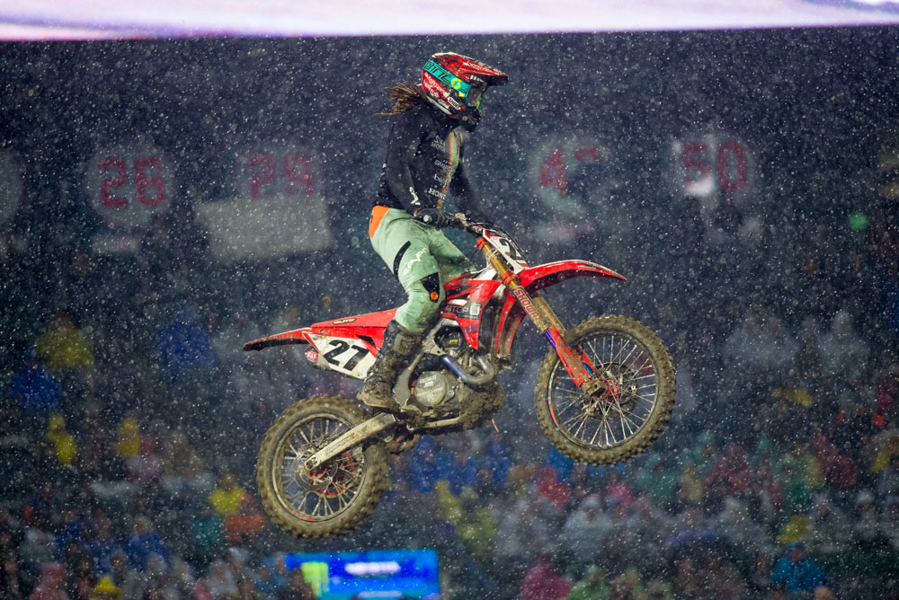 Jason Anderson/Husqvarna FC450: The 2018 series champ didn’t look himself all day and you could tell it was going to be a rough night. We have heard that he had an an off-season crash and might be nursing it through the first couple rounds/weeks. Anderson’s starts were good all day/night, but he just wasn’t able to finish off the heat and main event races. I also noticed that Anderson’s Rockstar Energy Husqvarna FC450 is using the older 2018 cylinder head design and not the 2019 version. I have heard from a couple close sources that Anderson had a chance to ride a certain MXGP racer’s engine package (last year) and demanded to use that older engine design for 2019. If you look closely to the engine/mounts there is some fab work to disguise the engine to look more 2019’ish.