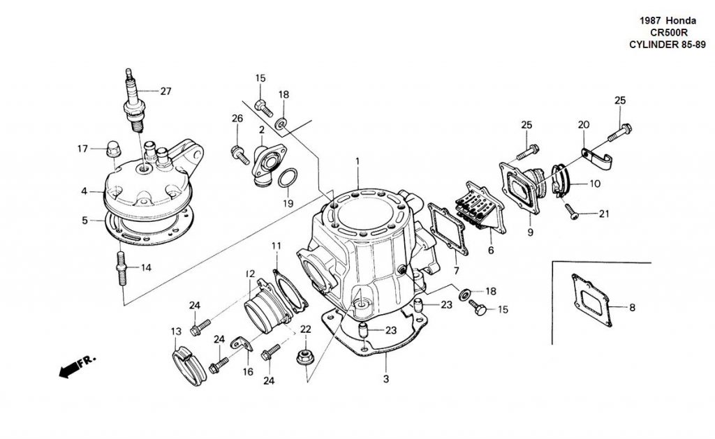 In order to accomplish this, Honda’s engineers made several small changes to the basic ’86 motor package. First up was a slightly longer (5mm) connecting rod. This was done to both increase torque and make starting the finicky 500 easier. To further aid starting, the engineers also modified the head to lower the motor’s compression slightly from 7.1-to-1 to 6.8-to-1. While the head and connecting rod were altered, the porting in the 500’s massive cylinder remained unchanged and it maintained the same 491.4cc displacement and 89.00mm x 79.00mm bore and stroke it had used in 1986. In a nod to simplicity (and probably cost), the new CR500R did not receive either the HPP (Honda Power Port) variable exhaust port found on the CR250R or the ATAC (Automatic Torque Amplification Chamber) exhaust gizmo used on the CR125R.