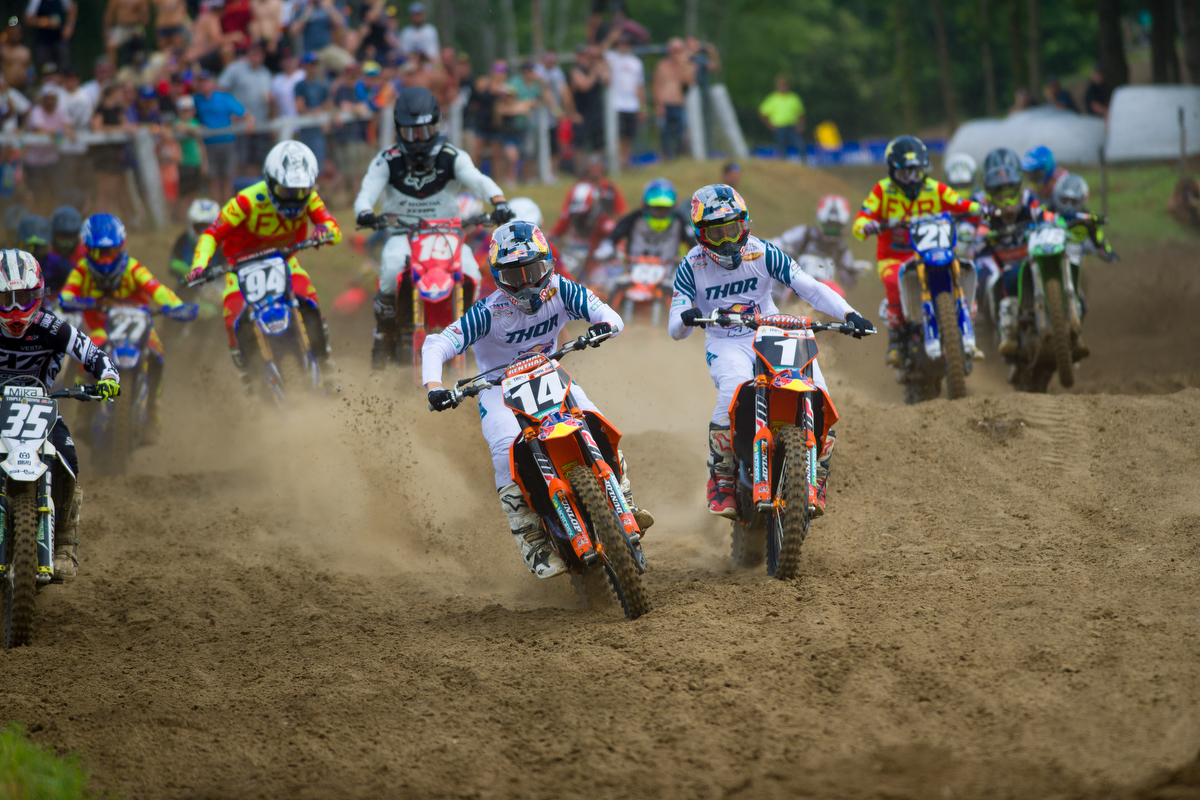It was a pair of KTM’s up front for the start of 250 Moto two, with Tanner Ward(14) and Jess Pettis(1) leading the way.