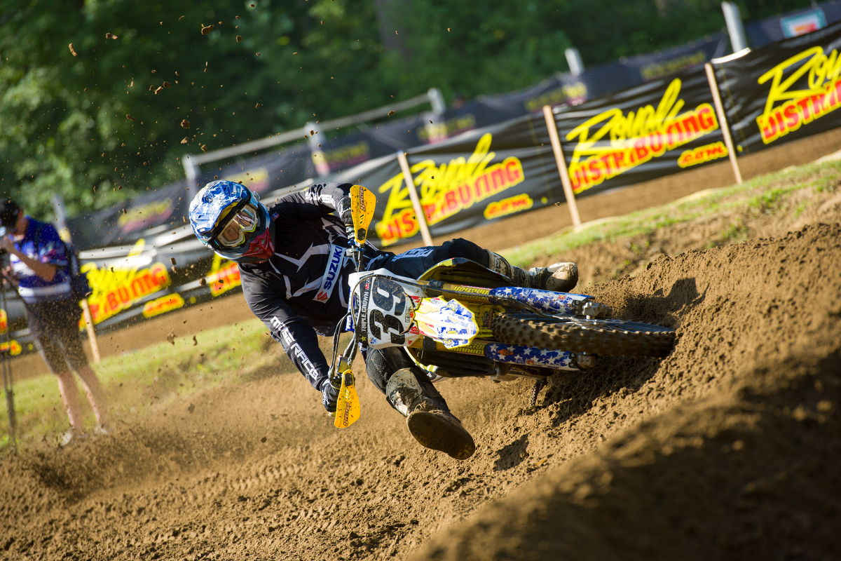 Josh Cartwright made his first Canadian National appearance in years and nabbed the holeshot in the first 450 Moto. He finished the day with 5-7 finishes for 6th overall.
