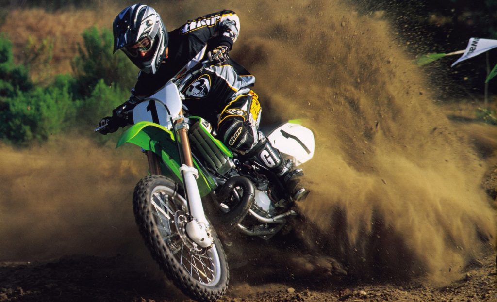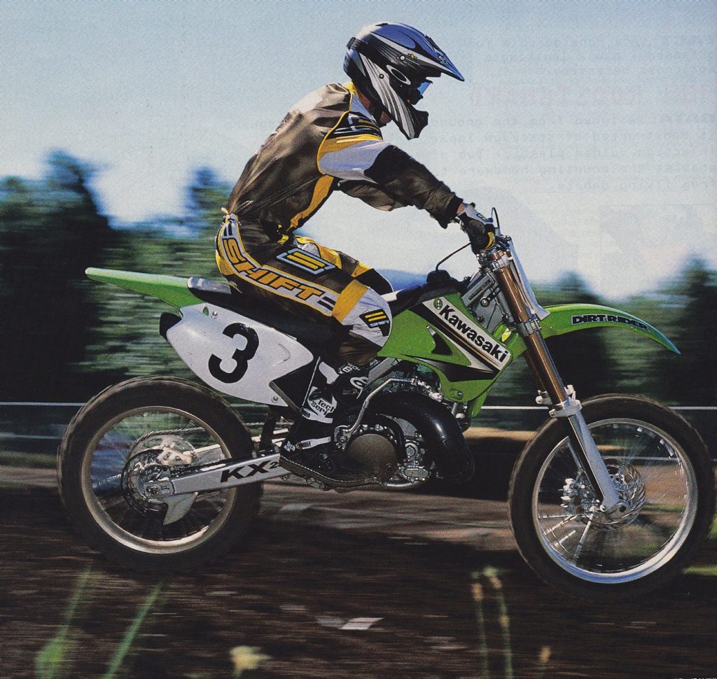 With its improved ergonomics, lighter feel, punchier motor and tighter handling, the ’03 KX was great at shredding corners. Photo Credit: Kawasaki