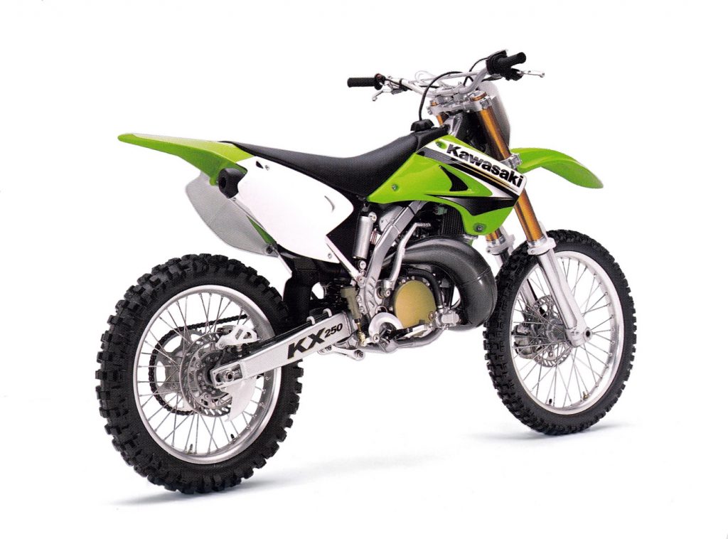 In 2003, the KX250 was all-new and improved in almost every way. Lighter, quicker, and better handling, it was the best KX in four years, but still not the best bike in the class. Photo Credit: Kawasaki