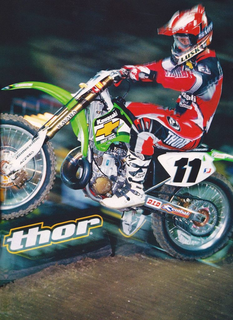 Factory Kawasaki had Ezra Lusk and James Stewart on the all-new KX250 and KX125 in 2003. Photo Credit: Kawasaki