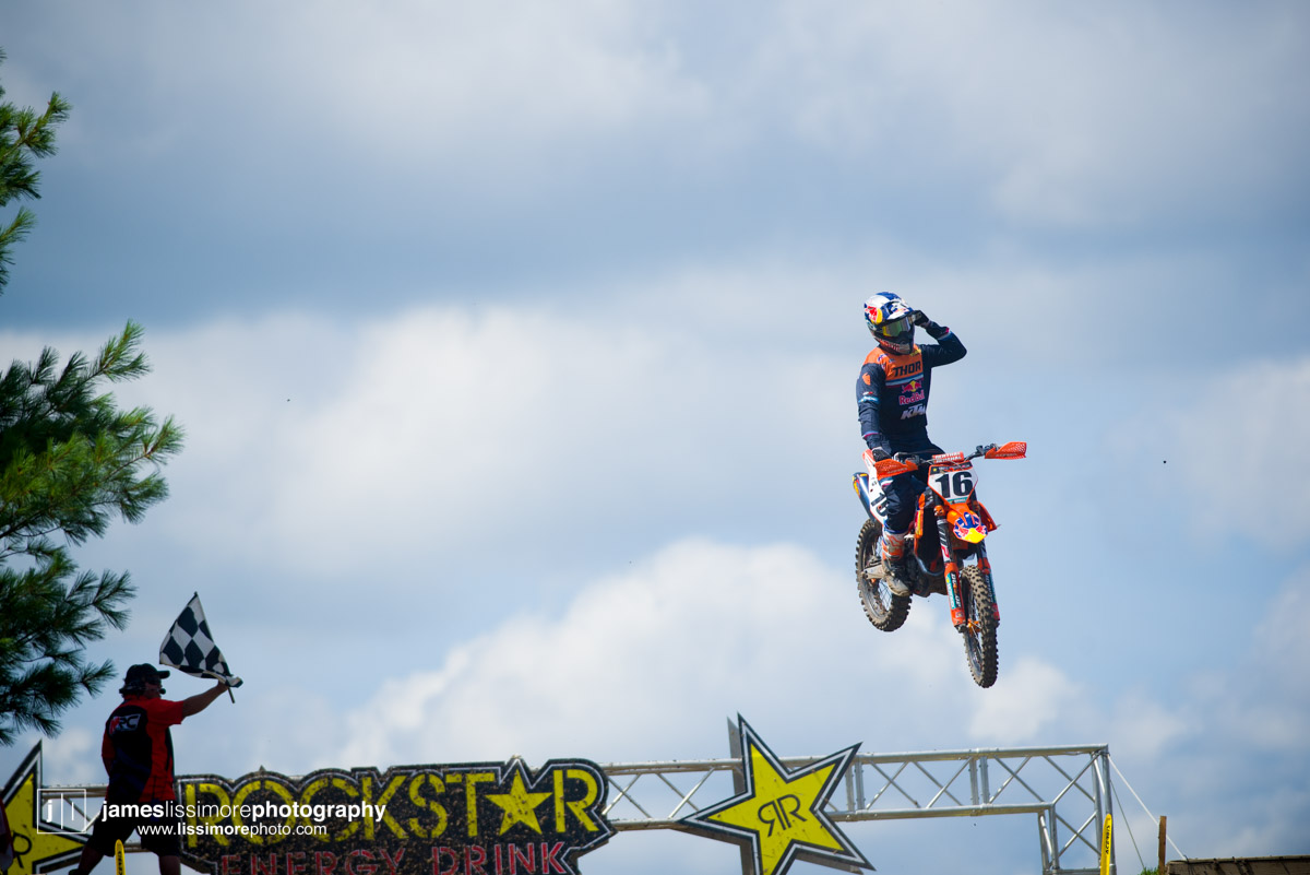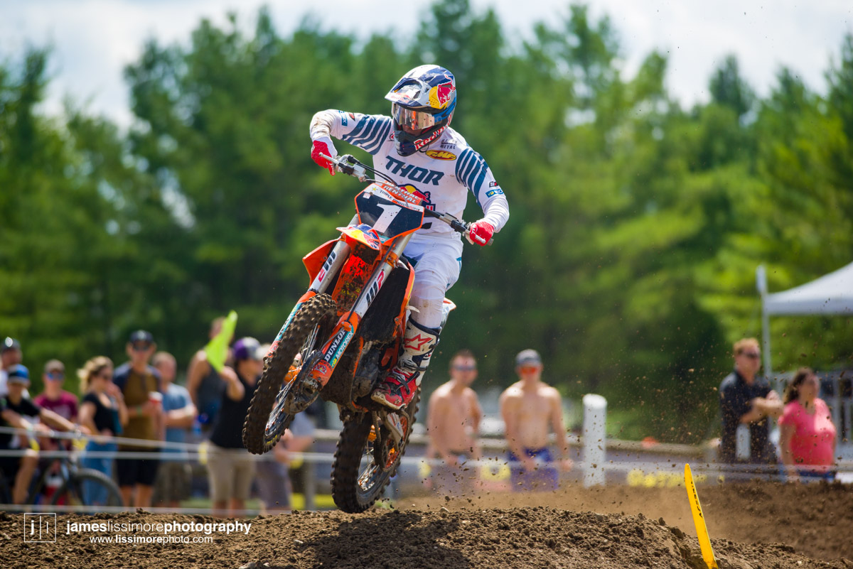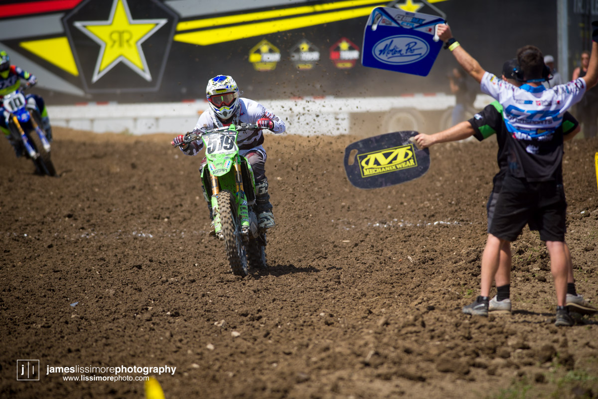 It wouldn’t be Canadian Moto without a strange incident and this time it was Matt Goerke at the receiving end of it. After locking bars with Colton Facciotti down the start straight, he ended up colliding with Tony Alessi, who was standing next to the first turn and knocking them both out. Goerke would end up breaking his collarbone and capping off what has been a less than stellar outdoor series.