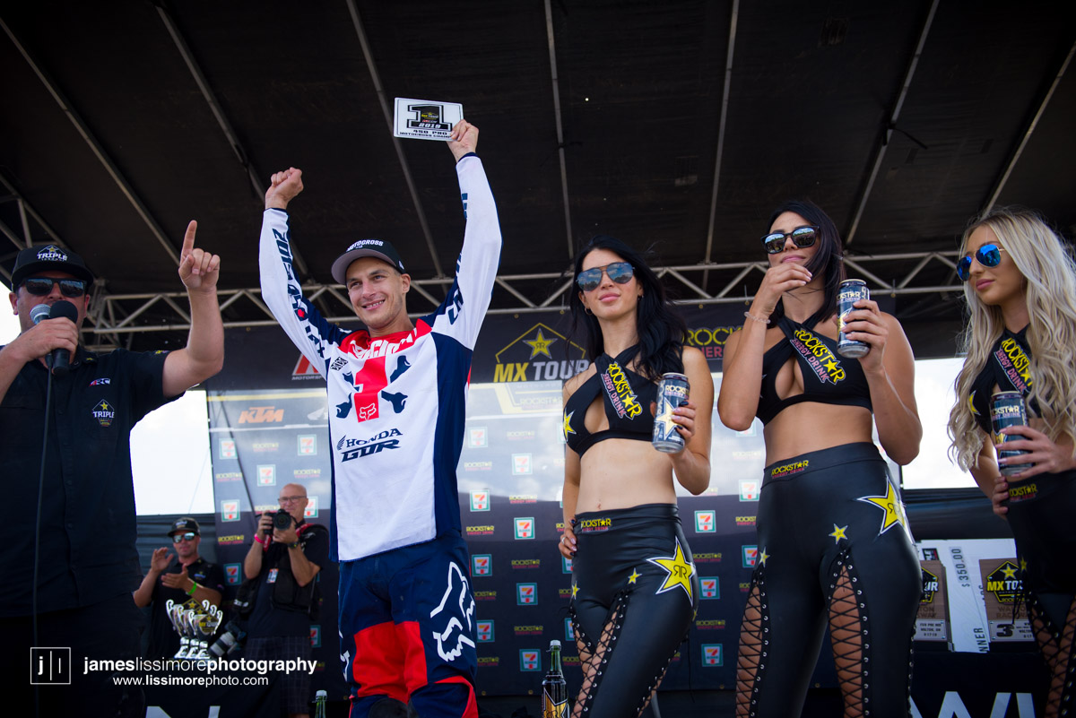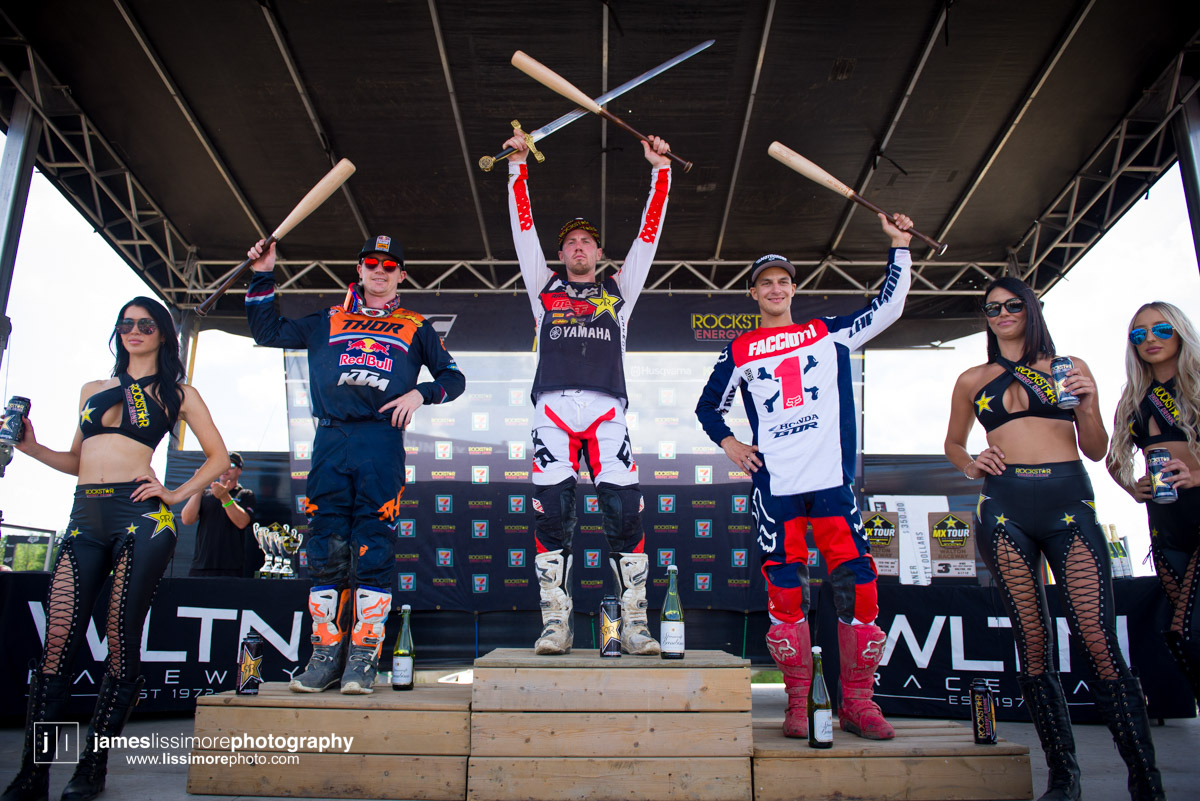 Phil Nicoletti and Colton Facciotti had a good battle in Moto two, with Phil making the pass to take the Moto and overall win. It’s already been said, but only in Canada could a rider who threatened to kill someone be given a sword and a baseball bat for winning the race.