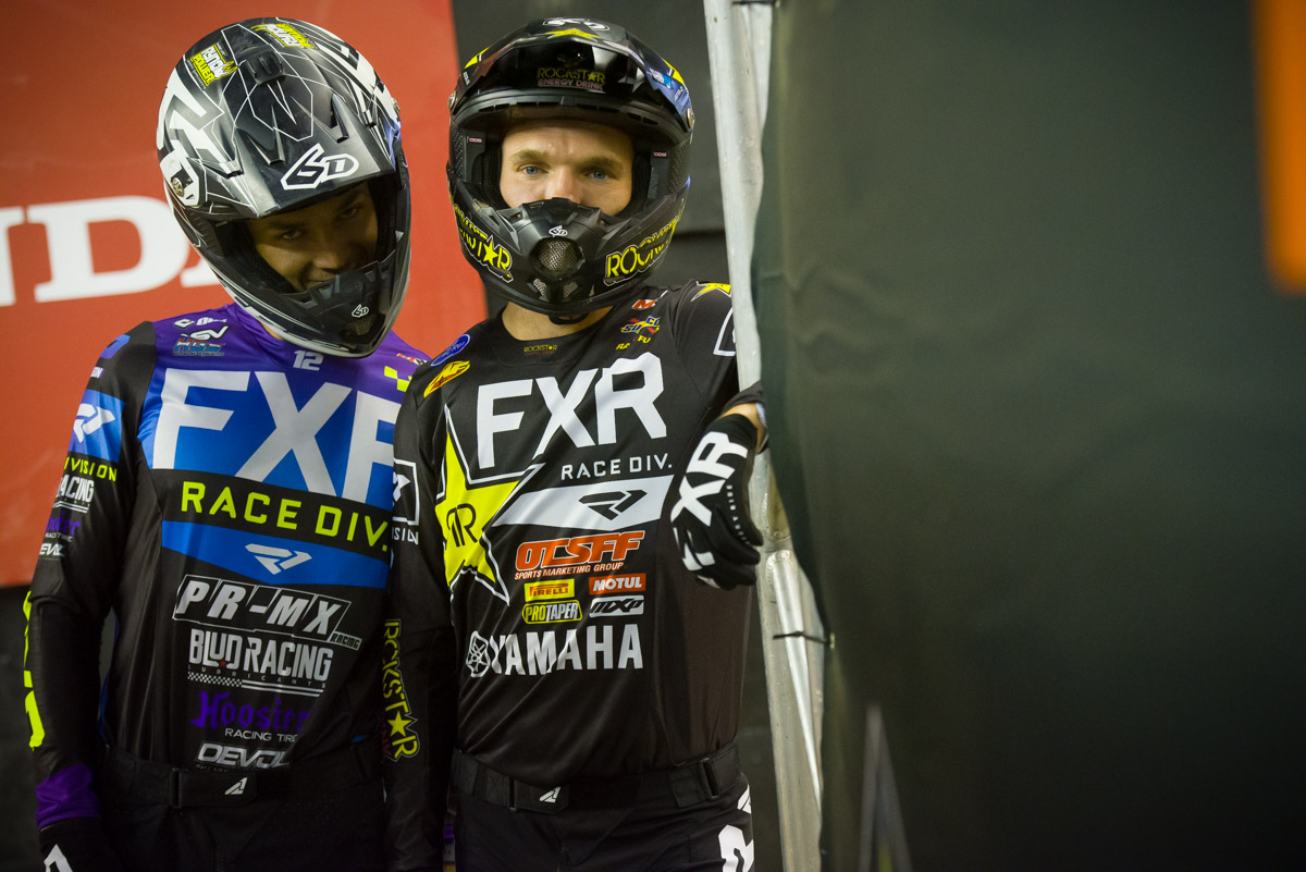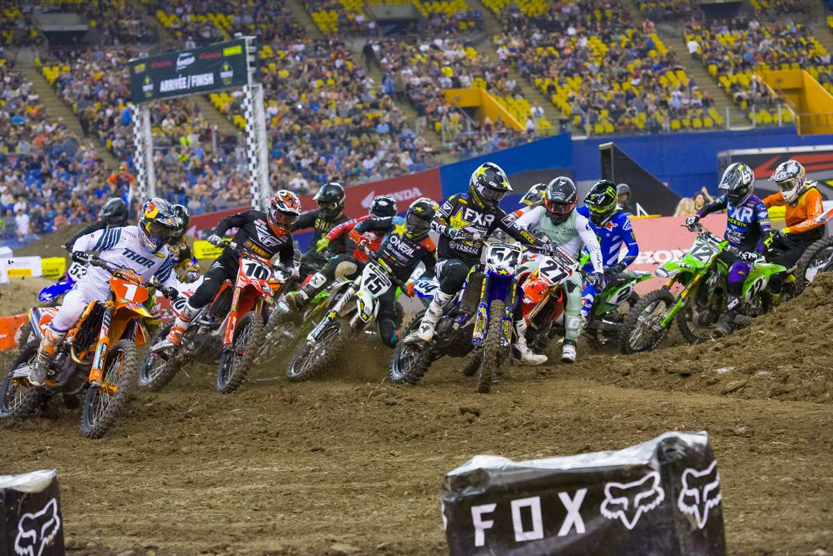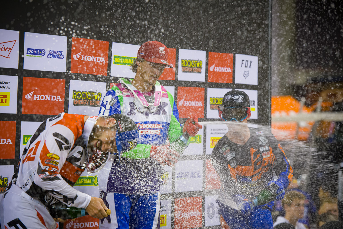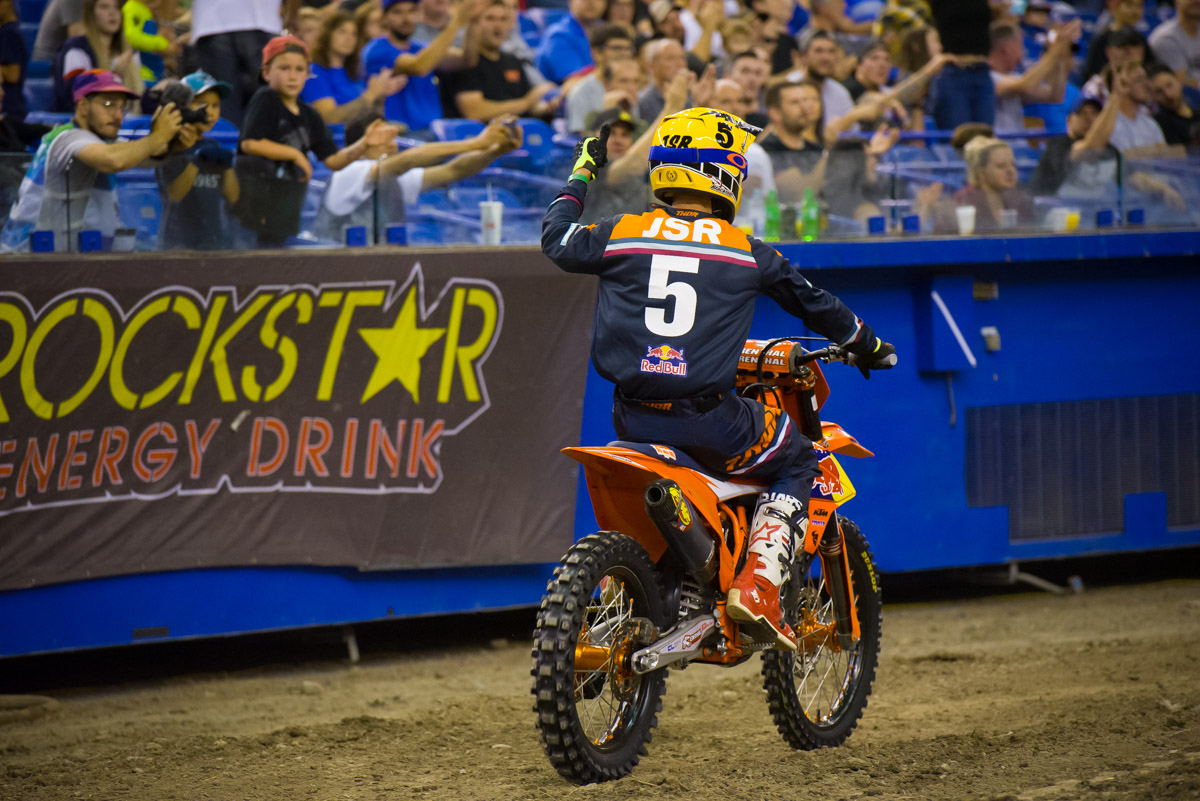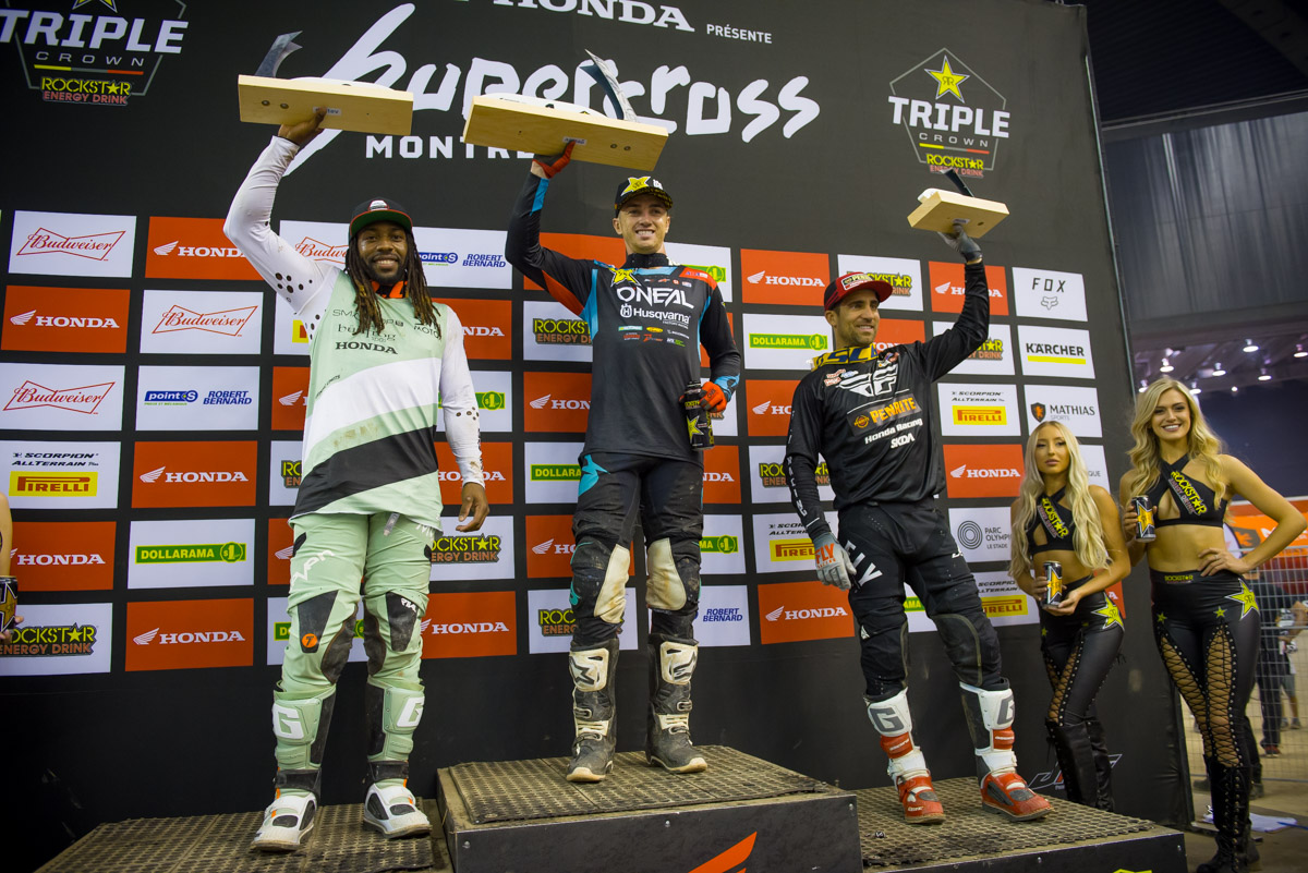 I was very surprised at Cole Thompson’s (#1) lack of speed. He’s a very good SX rider and I thought he’d be in the mix more than he was.Matt Goerke’s Montreal went about as well as the rest of his year has gone. Not sure what’s happening here but he’s just been off for most of the year.CADE IS NO GATE FILLER! With limited time on the new Kawasaki, I thought Clason did pretty well and it sounds like he has a home with them for 2020.Brayton’s starts weren’t there but he was in the class of both Stewart and Wilson but he just couldn’t set his own pace.Skip Norfolk is a fan of Jayce Pennington and just wants to see him stay upright and get some momentum.I love retro gear, everyone knows that but for some reason I can’t get into this Fox stuff that Dylan Wright is wearing. I dunno, it’s just me I guess. Anyways, Wright was very fortunate to win the overall with 5-2 scores and a crash in each main. When it’s your year, it’s your year…Lots of confusion over who got third in MX2 but it ended up being this guy, Jorgenson, who put two steady races in. Who am I kidding, almost no one in MX2 put two steady races together.Ah man, I think Jess Pettis really jacked his knee up in a first turn crash in main #2 after dominating main #1. I really hope it doesn’t wreck his 2020 SX series.Andy Wilson telling Andrew about countertops and cabinets.THE JSR got honored along with some other French Canadian heroes in the intermission and that’s always cool.So did Carl Vaillancourt who was actually on his original 91 CR125 with a Mugen cylinder and head.Mookie looked almost as good as ever. I did think he was better last year but hey, it’s his first race off a bad injury.The Brayton/Wilson main event #2 battle was perhaps the best one of the night. Both guys were swapping spots like crazy and having a blast doing it.My name is Steve Matthes and I’d like to apologize to Phil Nicoletti for making fun of him on social, on my shows, in texts to him for going on his booze cruise. He rode great…maybe he needs to go on more?Carnage in 250SX main event #2.Pettis looks crushed and it doesn’t look good for his knee.Renzland won main #2 in a wire to wire ride that showed his SX potential.250SX podium and Wright has clinched the 250 triple crown for the year.Dean O was the big winner at Montreal SX with 1-3-1 scores.450SX podium. Poor Phil…he tied for third but of course he gets fourth.