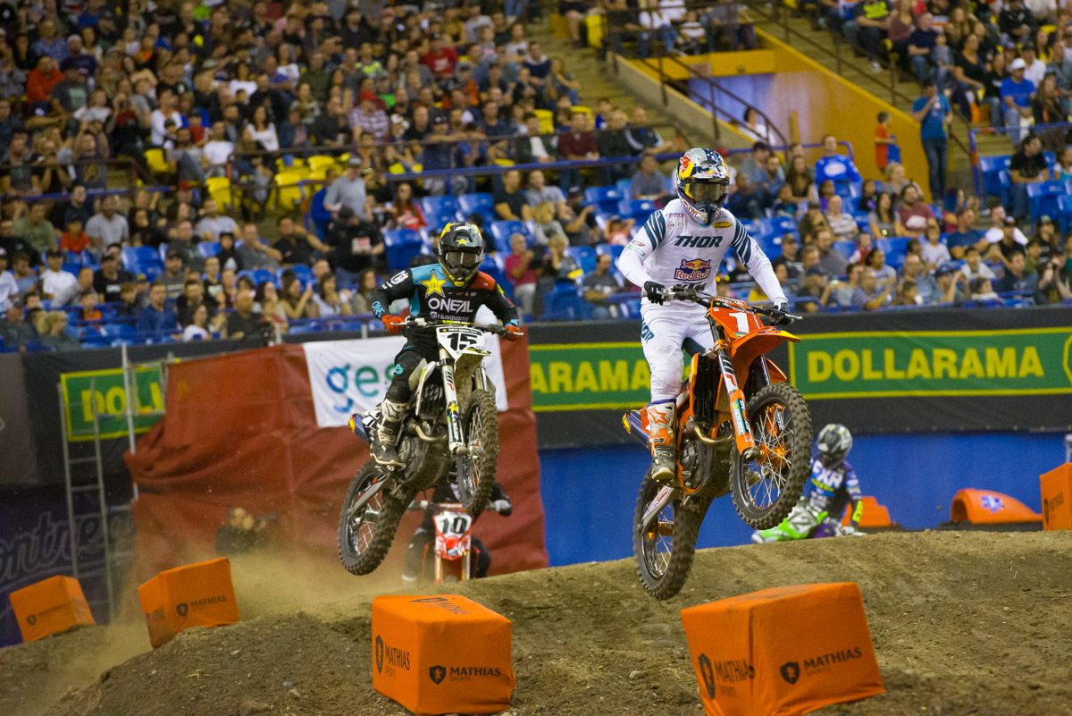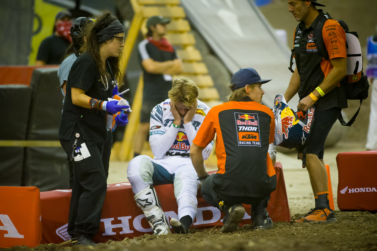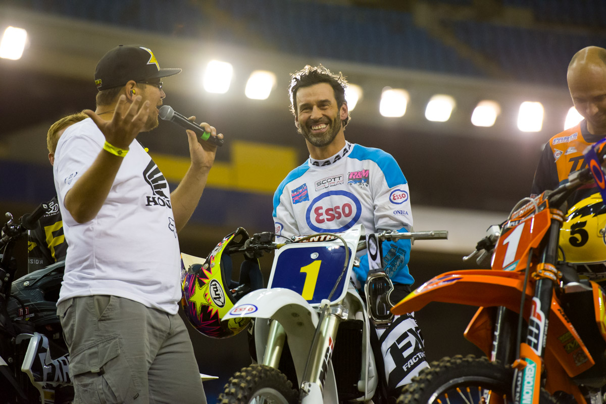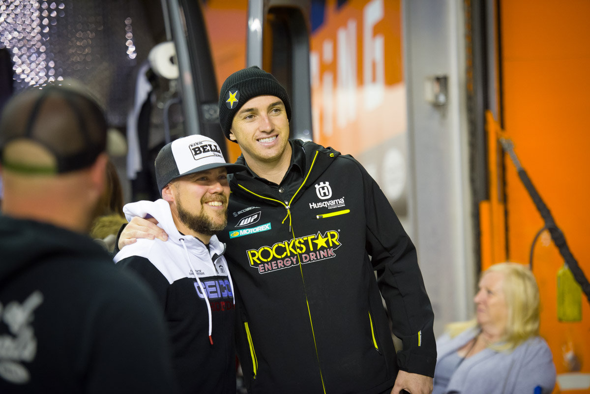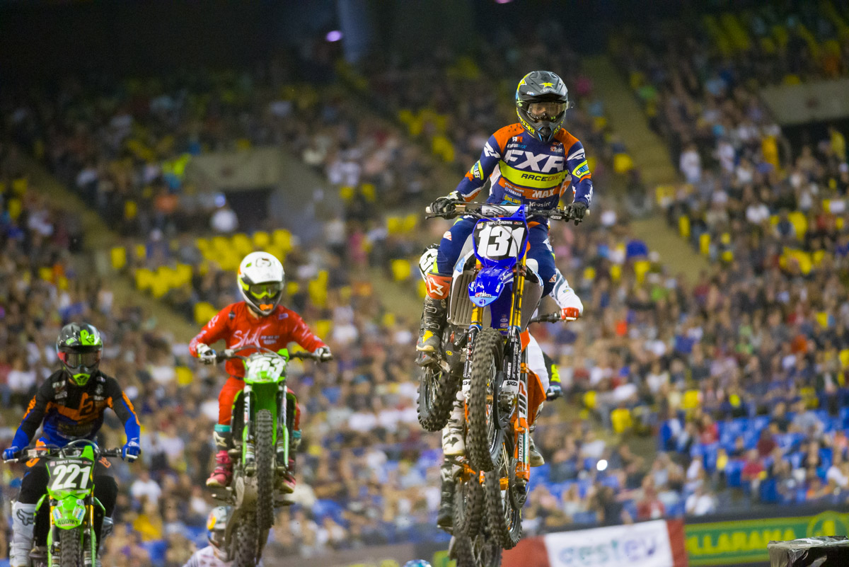 I was very surprised at Cole Thompson’s (#1) lack of speed. He’s a very good SX rider and I thought he’d be in the mix more than he was.Matt Goerke’s Montreal went about as well as the rest of his year has gone. Not sure what’s happening here but he’s just been off for most of the year.CADE IS NO GATE FILLER! With limited time on the new Kawasaki, I thought Clason did pretty well and it sounds like he has a home with them for 2020.Brayton’s starts weren’t there but he was in the class of both Stewart and Wilson but he just couldn’t set his own pace.Skip Norfolk is a fan of Jayce Pennington and just wants to see him stay upright and get some momentum.I love retro gear, everyone knows that but for some reason I can’t get into this Fox stuff that Dylan Wright is wearing. I dunno, it’s just me I guess. Anyways, Wright was very fortunate to win the overall with 5-2 scores and a crash in each main. When it’s your year, it’s your year…Lots of confusion over who got third in MX2 but it ended up being this guy, Jorgenson, who put two steady races in. Who am I kidding, almost no one in MX2 put two steady races together.Ah man, I think Jess Pettis really jacked his knee up in a first turn crash in main #2 after dominating main #1. I really hope it doesn’t wreck his 2020 SX series.Andy Wilson telling Andrew about countertops and cabinets.THE JSR got honored along with some other French Canadian heroes in the intermission and that’s always cool.So did Carl Vaillancourt who was actually on his original 91 CR125 with a Mugen cylinder and head.Mookie looked almost as good as ever. I did think he was better last year but hey, it’s his first race off a bad injury.The Brayton/Wilson main event #2 battle was perhaps the best one of the night. Both guys were swapping spots like crazy and having a blast doing it.My name is Steve Matthes and I’d like to apologize to Phil Nicoletti for making fun of him on social, on my shows, in texts to him for going on his booze cruise. He rode great…maybe he needs to go on more?Carnage in 250SX main event #2.Pettis looks crushed and it doesn’t look good for his knee.Renzland won main #2 in a wire to wire ride that showed his SX potential.250SX podium and Wright has clinched the 250 triple crown for the year.Dean O was the big winner at Montreal SX with 1-3-1 scores.450SX podium. Poor Phil…he tied for third but of course he gets fourth.