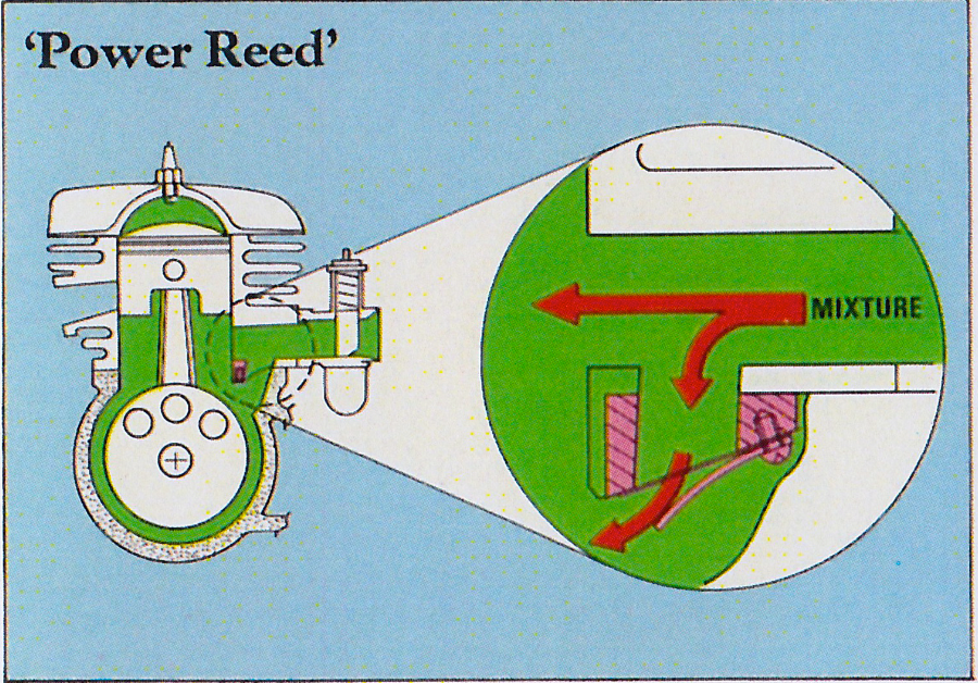 The RM250C-2 used a unique semi-case-reed intake system Suzuki called the “Power Reed”. The Power Reed was basically a hybrid between the old piston-port and new reed-valve systems. By combining them, Suzuki hoped to get both the responsive low-end of the reed valve and screaming top-end of a piston-port design. Photo Credit: Suzuki