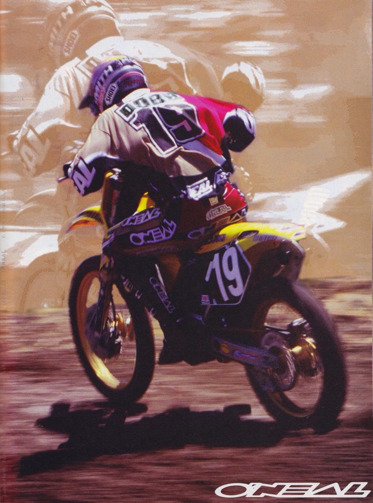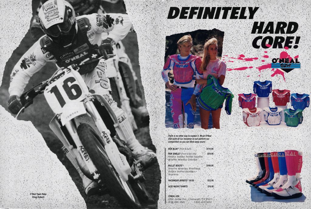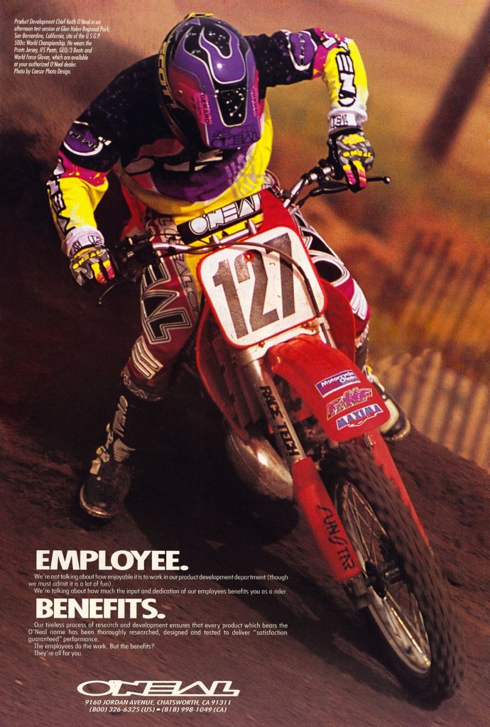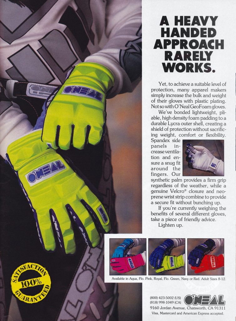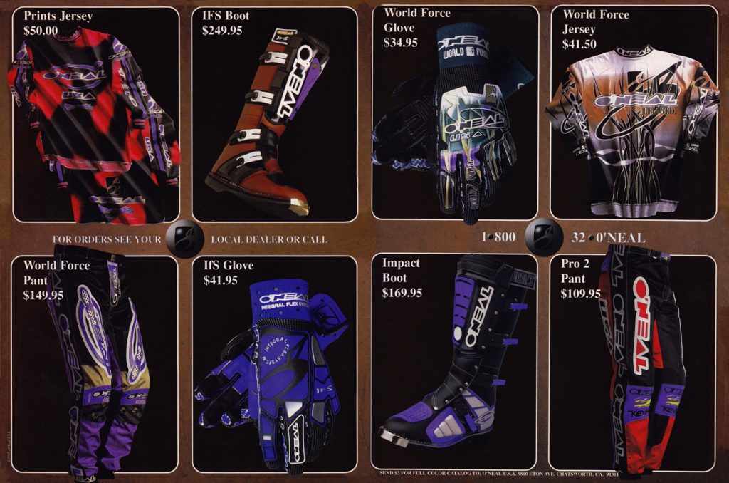 As in our previous entry that covered O’Neal’s origins, this one is going to look back at the brand through the ads that they produced. For this second O’Neal installment, we are going to go through O’Neal’s motocross gear ads from the nineties year-by-year. Along the way, I am going to be adding my thoughts to each, with Matthes and The Doctor chiming in where they feel necessary.