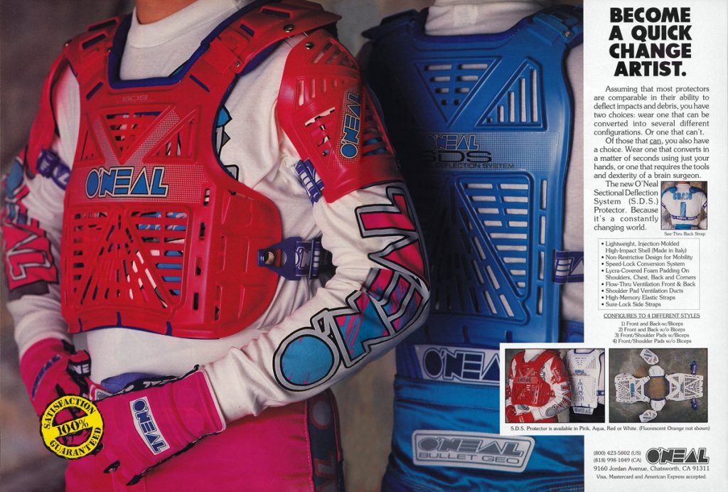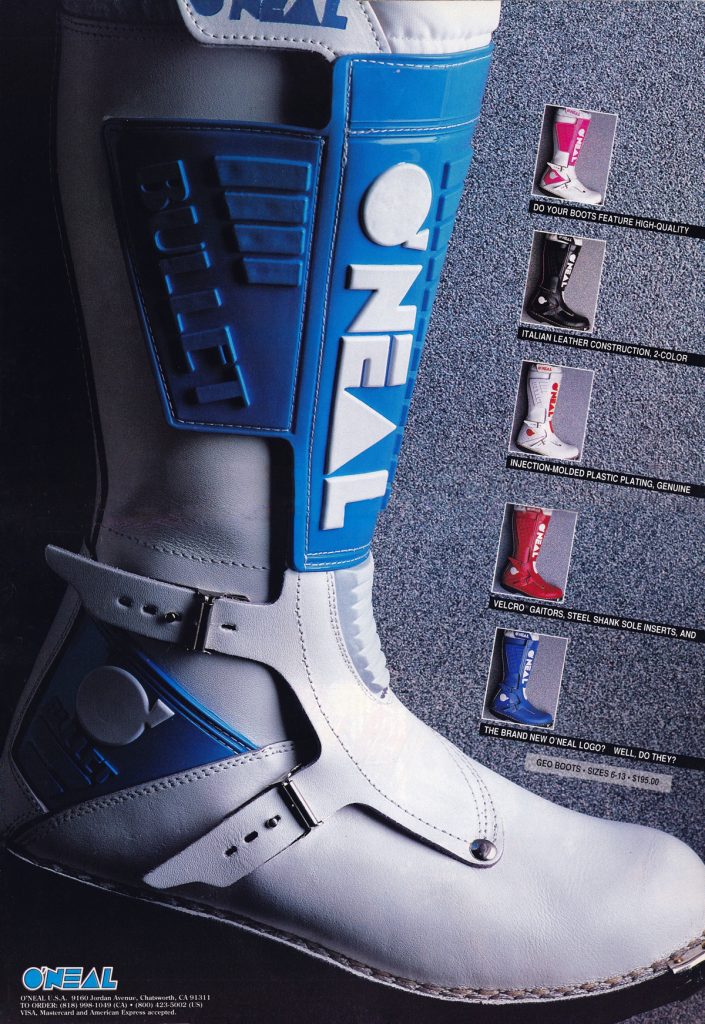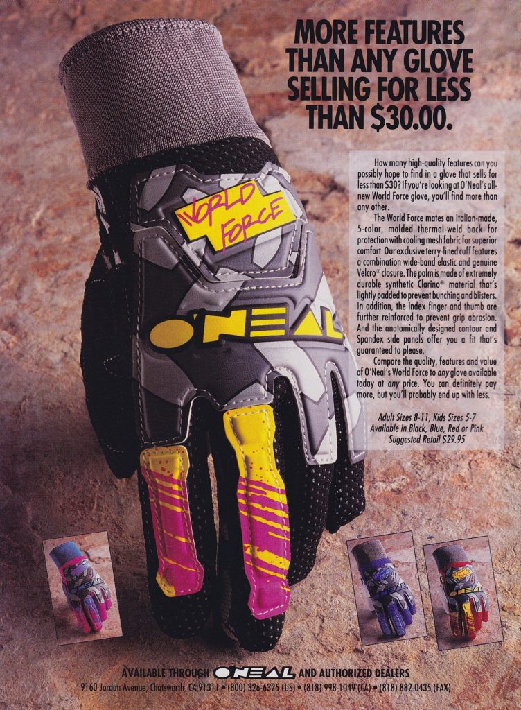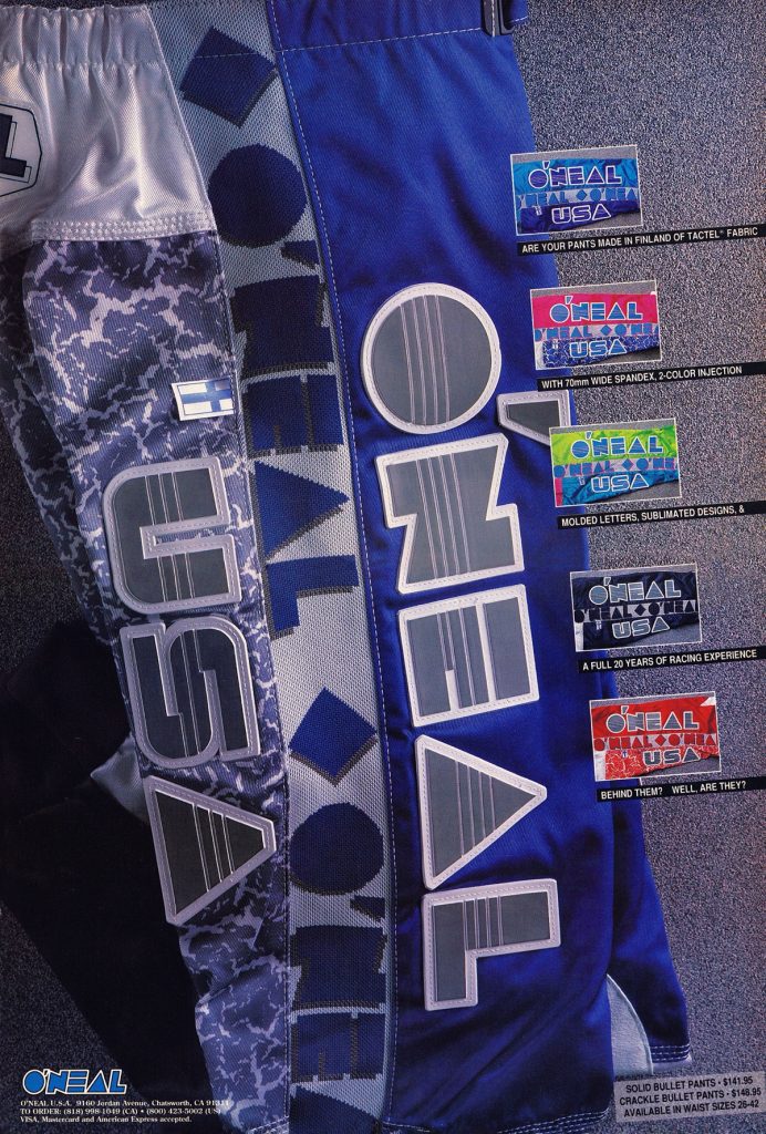 As in our previous entry that covered O’Neal’s origins, this one is going to look back at the brand through the ads that they produced. For this second O’Neal installment, we are going to go through O’Neal’s motocross gear ads from the nineties year-by-year. Along the way, I am going to be adding my thoughts to each, with Matthes and The Doctor chiming in where they feel necessary.