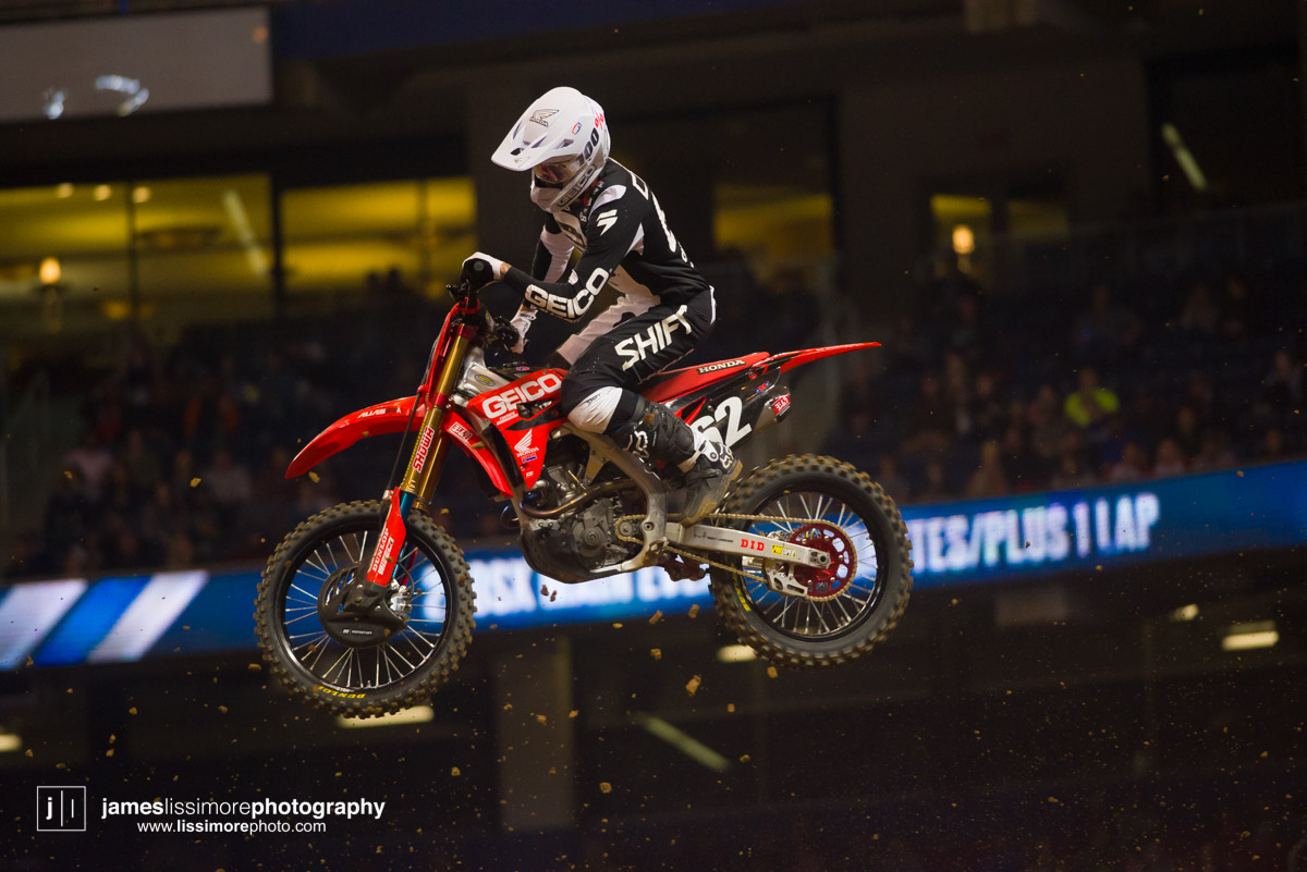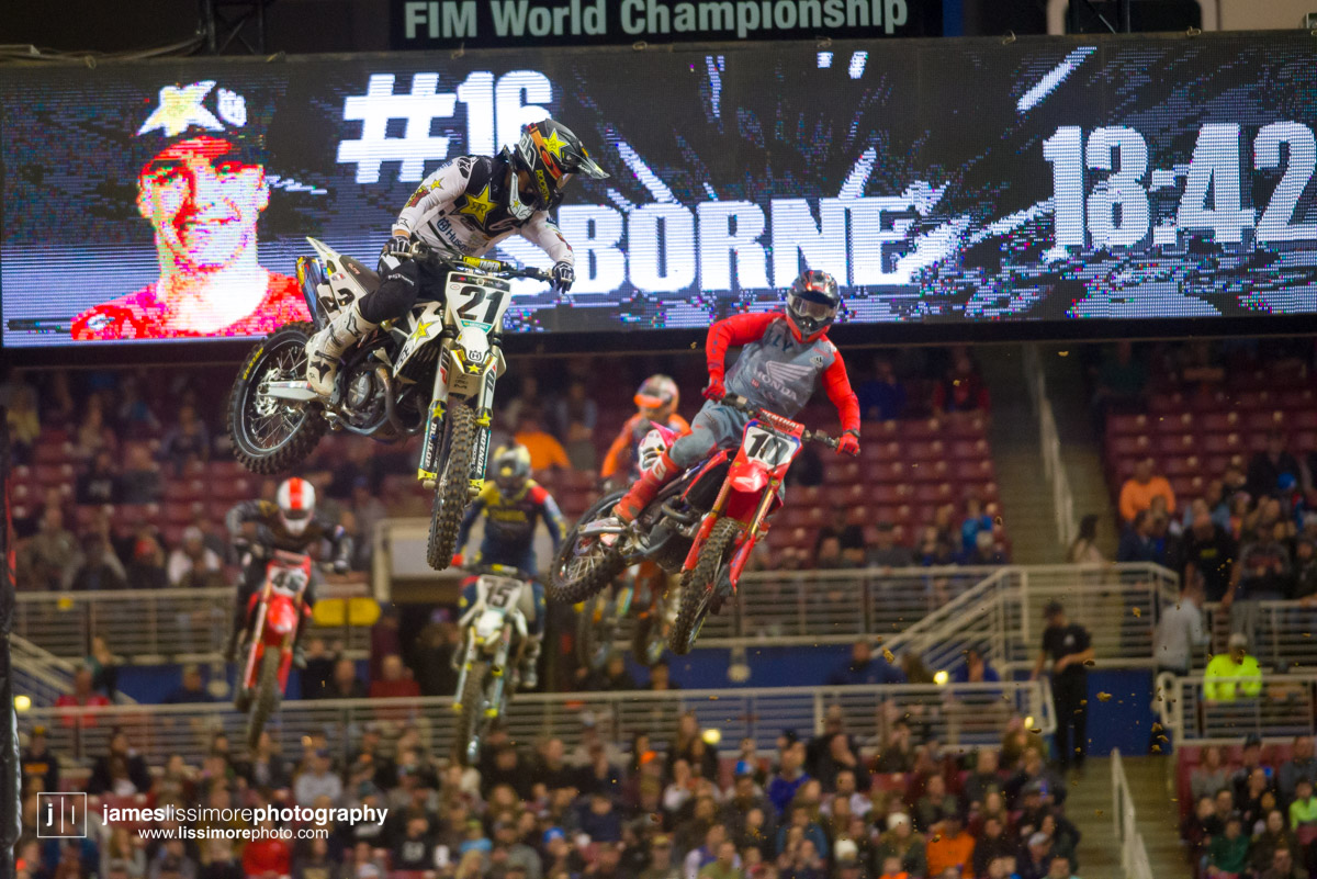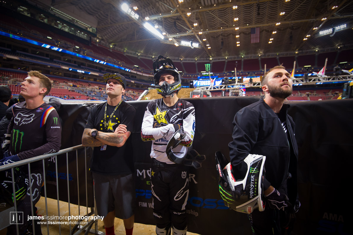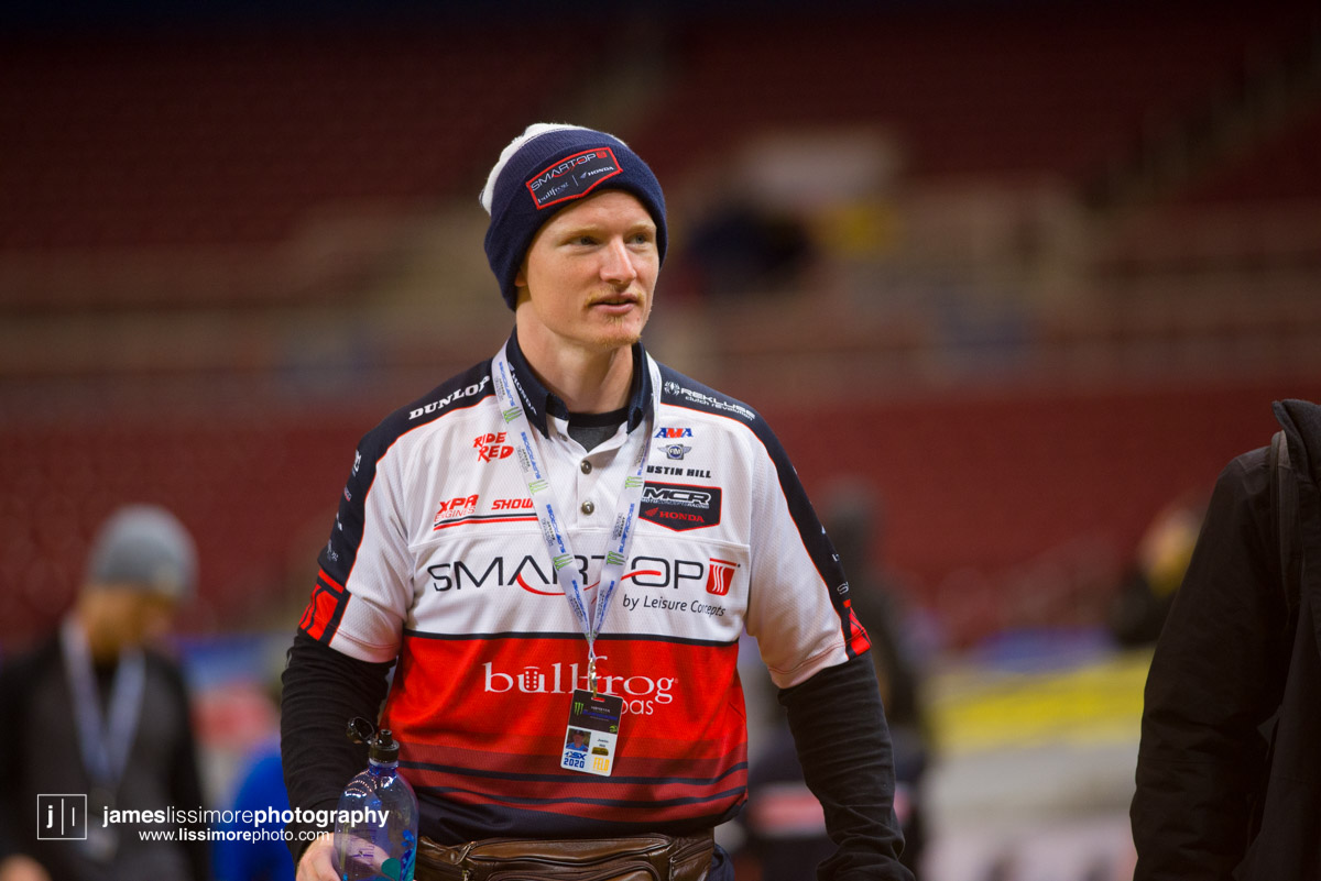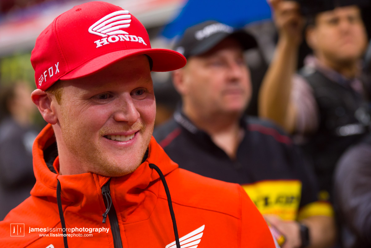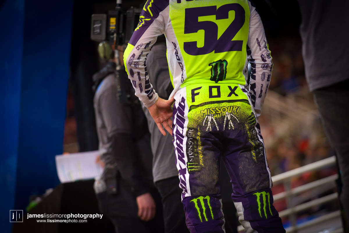 Deep sleeper Cade Clason sporting the new Jett Lawrence replica gloves.The fanny pack was back! All jokes aside, Hill has been pretty solid so far.Track talk is easily Steve’s favorite time of the day. Dan Truman’s stories never disappoint, either. Finally, Lars stole my haircut.This is a great example of how not to wear a hat.Shane Drew has worked with JB51 on many different teams and in many different situations. I am sure he is happy to see Barcia succeeding.Eli Tomac really stuck his neck out a few times on his charge to the front Saturday.Carlos Rivera is one of the nicest people you’ll ever meet. He also has more titles than most anyone you’ll ever meet.Poor McAdoo. He had a huge crash right in front of me and the bike landed on him just to make things as bad as possible. I don’t know the exact timetable on collapsed lungs but it can’t be good.The Tehran SX featured an array of SCUD missiles fired at their own people.Being able to share moments like that with your child has to be near the top of any list. Also, this is such a great FLY ad.Hey guys, wtf? The track map said we go backwards here.Australian and Japanese relations have broken down for the first time since 1945.Troll Train did what Troll Train does. He doesn’t have the pace to go with Forkner, Cooper, and Ferrandis but top five’s are legit.This is the first lap of the heat race. This start was critical for Blose and Reed as they would finish 9th and 10th, just like they are pictured here.Eli Tomac was much better this weekend. Eli is coming, folks.AC and Zacho went at it like it was 2017. I love the aggression but let’s stay healthy, ok boys?Justin Cooper has been better than I expected. Kudos.Jett Lawrence might be the most exciting 250 rider to watch. He crashes a lot, goes fast, and more or less wreaks havoc at all times.Hartranft is giving the TLD KTM team some much needed help. Way to deliver.The most talked about fantasy pick of the day, Aaron Tanti came through in the clutch, qualifying in the LCQ. I didn’t have the balls to pick him.Hometown win, Ferrandis lost a bunch of points, engaged to a Monster girl… life is good for Austin Forkner.I was unaware of said Missouri Mafia but I am into it. I am also curious as to why his pants are so dirty?Huskies for days at the front of the main event. Nice work by Roczen here to get up front quickly.“Don’t even think about that inside line, JB.”Favor repaid. Adam got into Zacho pretty good in the prior turn and I think Zach was done with the punching bag routine.I have been thoroughly impressed by Barcia so far. Dude is not messing around.Slingshot engaged. Mookie is so damn good in the whoops.This turn was weird. It was just before the finish and a flat left. It formed 2-3 ruts all night but they were incredibly close to each other. That also caused some aerial drama with riders almost colliding on the tabletop after.I am over here and second place is still over there.Trey has been testing a lot for HRC Honda and it looks like it’s paying off.It’s a celebration, bitches! Congrats to Roczen and everyone in his corner for finally making it back to the top step.