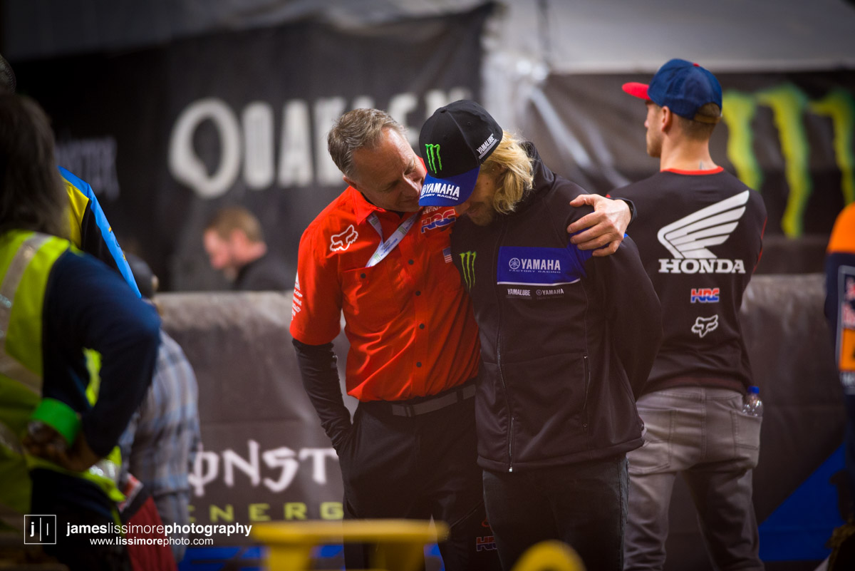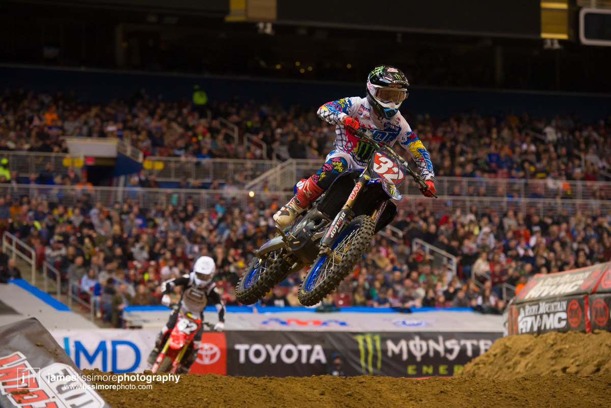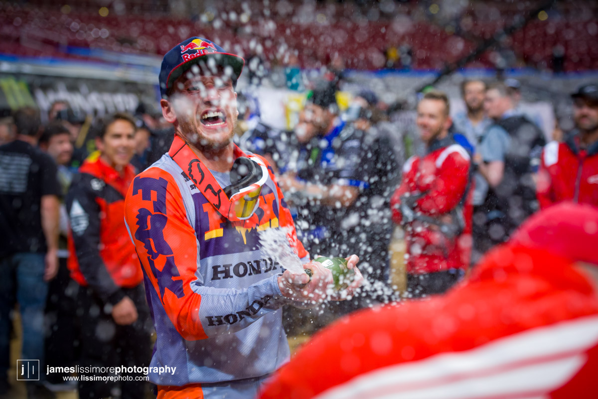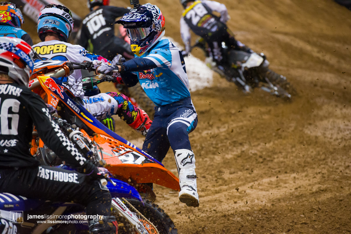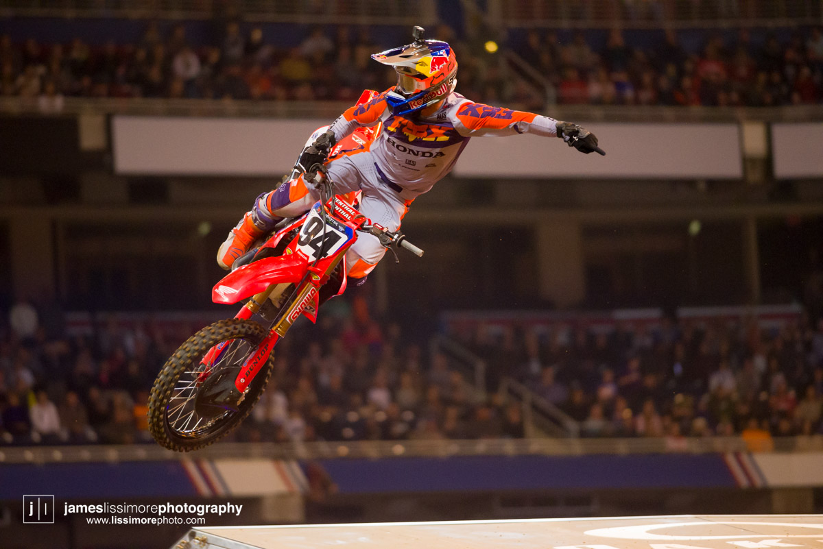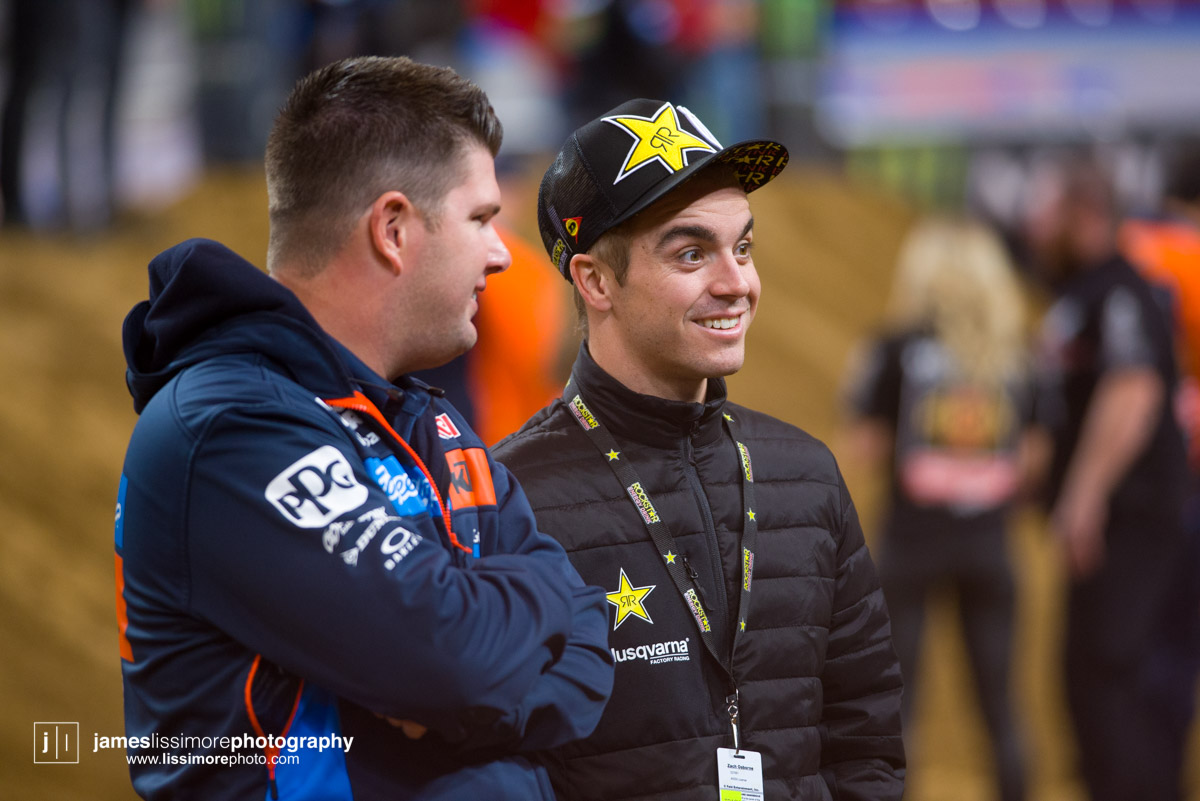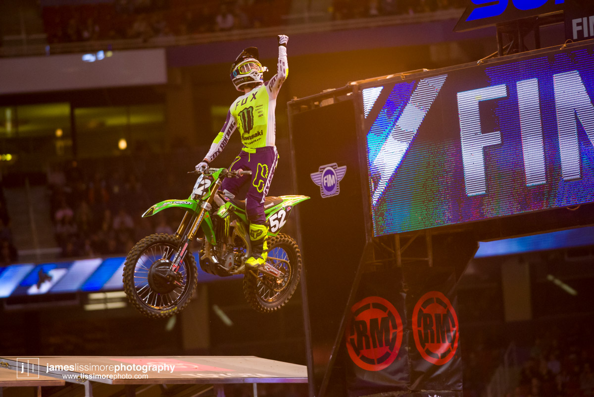 Deep sleeper Cade Clason sporting the new Jett Lawrence replica gloves.The fanny pack was back! All jokes aside, Hill has been pretty solid so far.Track talk is easily Steve’s favorite time of the day. Dan Truman’s stories never disappoint, either. Finally, Lars stole my haircut.This is a great example of how not to wear a hat.Shane Drew has worked with JB51 on many different teams and in many different situations. I am sure he is happy to see Barcia succeeding.Eli Tomac really stuck his neck out a few times on his charge to the front Saturday.Carlos Rivera is one of the nicest people you’ll ever meet. He also has more titles than most anyone you’ll ever meet.Poor McAdoo. He had a huge crash right in front of me and the bike landed on him just to make things as bad as possible. I don’t know the exact timetable on collapsed lungs but it can’t be good.The Tehran SX featured an array of SCUD missiles fired at their own people.Being able to share moments like that with your child has to be near the top of any list. Also, this is such a great FLY ad.Hey guys, wtf? The track map said we go backwards here.Australian and Japanese relations have broken down for the first time since 1945.Troll Train did what Troll Train does. He doesn’t have the pace to go with Forkner, Cooper, and Ferrandis but top five’s are legit.This is the first lap of the heat race. This start was critical for Blose and Reed as they would finish 9th and 10th, just like they are pictured here.Eli Tomac was much better this weekend. Eli is coming, folks.AC and Zacho went at it like it was 2017. I love the aggression but let’s stay healthy, ok boys?Justin Cooper has been better than I expected. Kudos.Jett Lawrence might be the most exciting 250 rider to watch. He crashes a lot, goes fast, and more or less wreaks havoc at all times.Hartranft is giving the TLD KTM team some much needed help. Way to deliver.The most talked about fantasy pick of the day, Aaron Tanti came through in the clutch, qualifying in the LCQ. I didn’t have the balls to pick him.Hometown win, Ferrandis lost a bunch of points, engaged to a Monster girl… life is good for Austin Forkner.I was unaware of said Missouri Mafia but I am into it. I am also curious as to why his pants are so dirty?Huskies for days at the front of the main event. Nice work by Roczen here to get up front quickly.“Don’t even think about that inside line, JB.”Favor repaid. Adam got into Zacho pretty good in the prior turn and I think Zach was done with the punching bag routine.I have been thoroughly impressed by Barcia so far. Dude is not messing around.Slingshot engaged. Mookie is so damn good in the whoops.This turn was weird. It was just before the finish and a flat left. It formed 2-3 ruts all night but they were incredibly close to each other. That also caused some aerial drama with riders almost colliding on the tabletop after.I am over here and second place is still over there.Trey has been testing a lot for HRC Honda and it looks like it’s paying off.It’s a celebration, bitches! Congrats to Roczen and everyone in his corner for finally making it back to the top step.