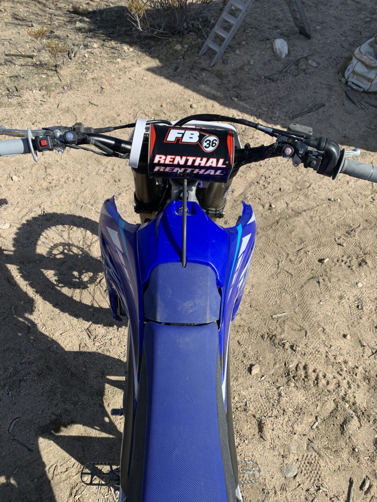 I do like that I get a little more front end control/feel when leaning into corners (with the Fatbar 36 handlebar and Renthal bar mounts). With the stock bar mounts/handlebar you can feel the Yamaha flex a little too much under extreme lean/load when slamming into ruts/berms. With the Renthal set up the Yamaha does feel like it has more precise feel when hitting corners at speed.