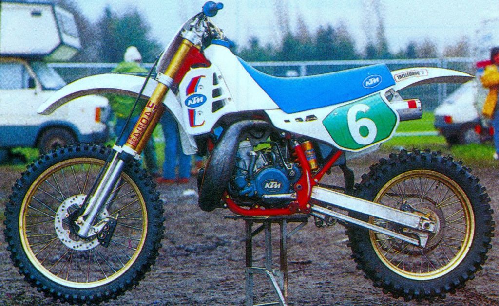 Seeing this writing on the wall, KTM began a campaign in the mid-eighties to try and mainstream their motocross lineup. They knew that if they were going to escape the fate of so many of their European rivals, they would need to make their bikes more appealing to the US market. This meant dialing in sharper turning, improving the ergonomics, adding a more aggressive powerband, and setting up the suspension for Saddleback instead of Sverepec. By keeping their traditional European quality and sprinkling in a bit of Japanese flavor, KTM believed they could provide a machine that would turn the tide against their far-East rivals.