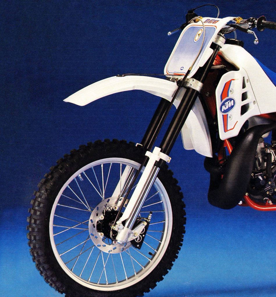 A new dual-piston front caliper for 1987 greatly improved the KTM’s previously mediocre braking performance. Photo Credit: KTM