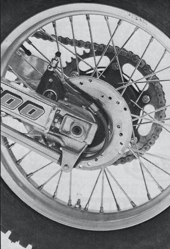 In an interesting combination of old and new, all of the 1987 full-size KTMs all featured a torque arm on their rear disc brakes. This holdover from the days of drum brakes was designed to isolate the rear suspension from the forces of brake torque. Photo Credit: KTM