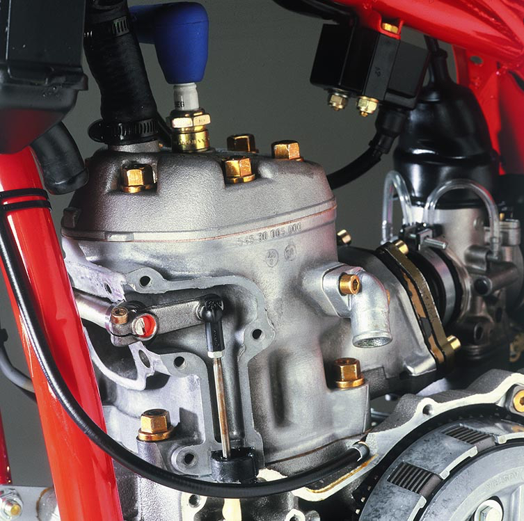 An all-new motor for 1987 incorporated a variable exhaust valve for the first time. Dubbed the “Power Exhaust Port,” this new design gave the KTM a snappy and potent powerband that was competitive with the best motors from Japan. Photo Credit: KTM