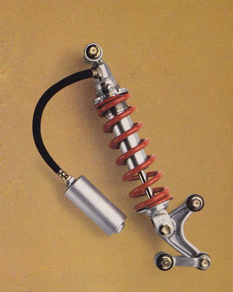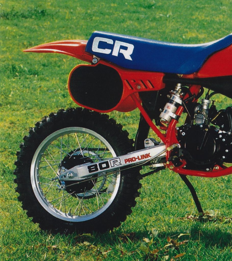 Much like the front forks, the Pro-Link rear on the ’83 CR was softly sprung and underdamped for anyone above the novice class. Photo Credit: Honda