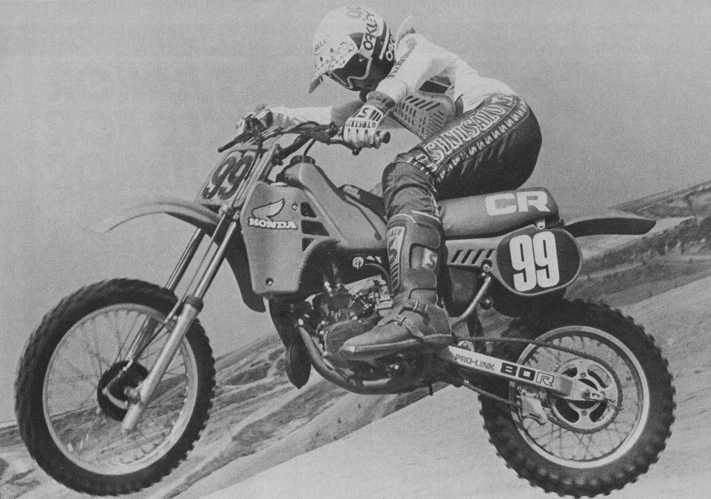 Stray Cat: Honda’s factory mini pilot Mike Healey made the CR look more impressive than it actually was in ’83. Photo Credit: Motocross Action